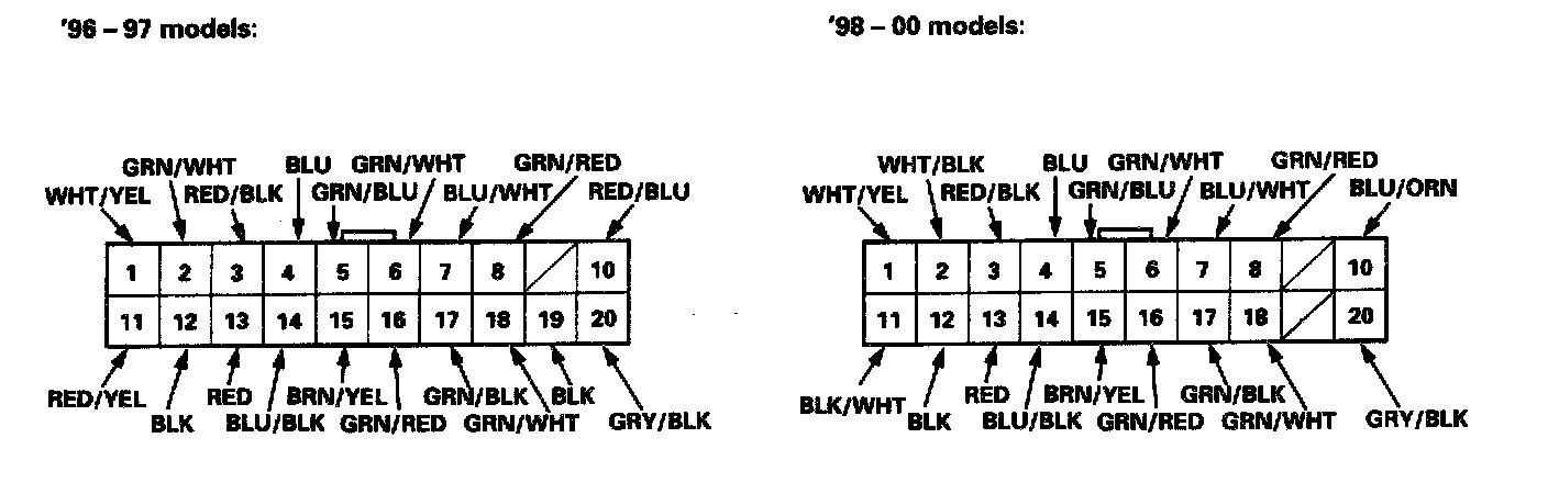- All connector views are from the wire side of female terminals unless otherwise noted.