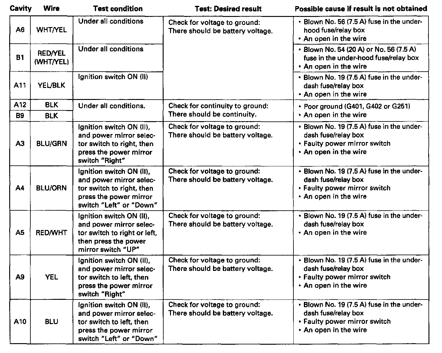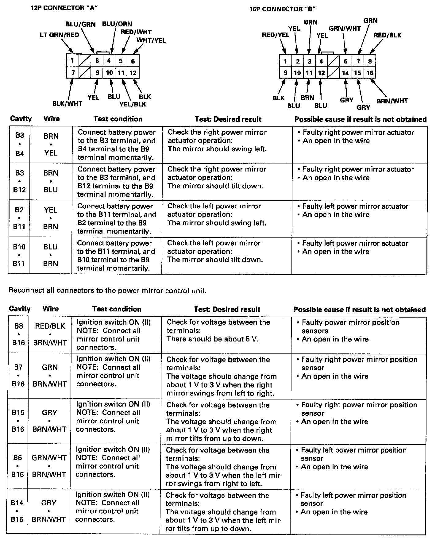 - If all the control unit (steering column, power seat, power mirror) input tests prove OK, disconnect all three control units, and check for opens or shorts in the communication lines.