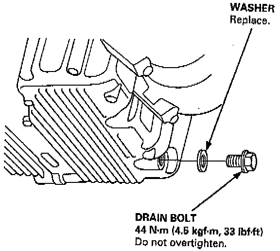 3. Reinstall the drain bolt with a new washer, and refill with the recommended oil.