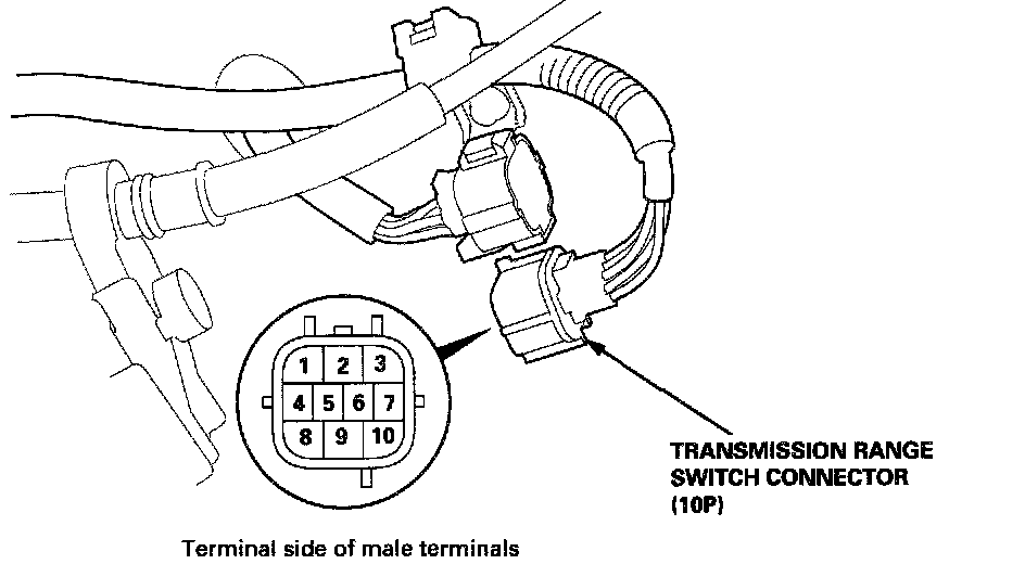 7. Disconnect the transmission range switch connector.