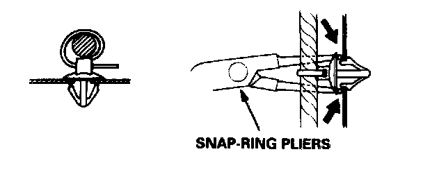 Slip pliers under the clip base and through the hole at an angle, then squeeze the expansion tabs to release the clip.