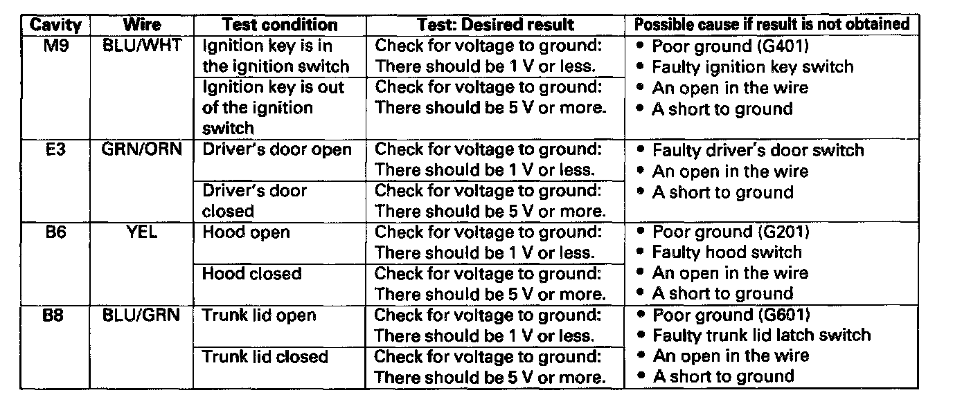 14. If all the input tests prove OK, one of the control units must be faulty, Substitute a known-good control unit for the one that is most likely at fault, then recheck the system. If the system works properly, the original control unit is faulty; replace it. If there is still a malfunction, substitute a known-good control unit for the next most likely unit to be at fault, and recheck. If the system works properly, the original unit is faulty; replace it.