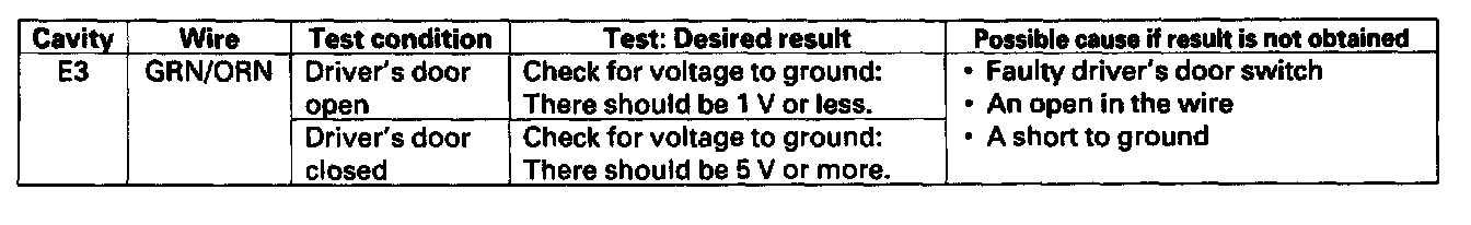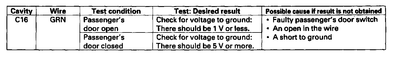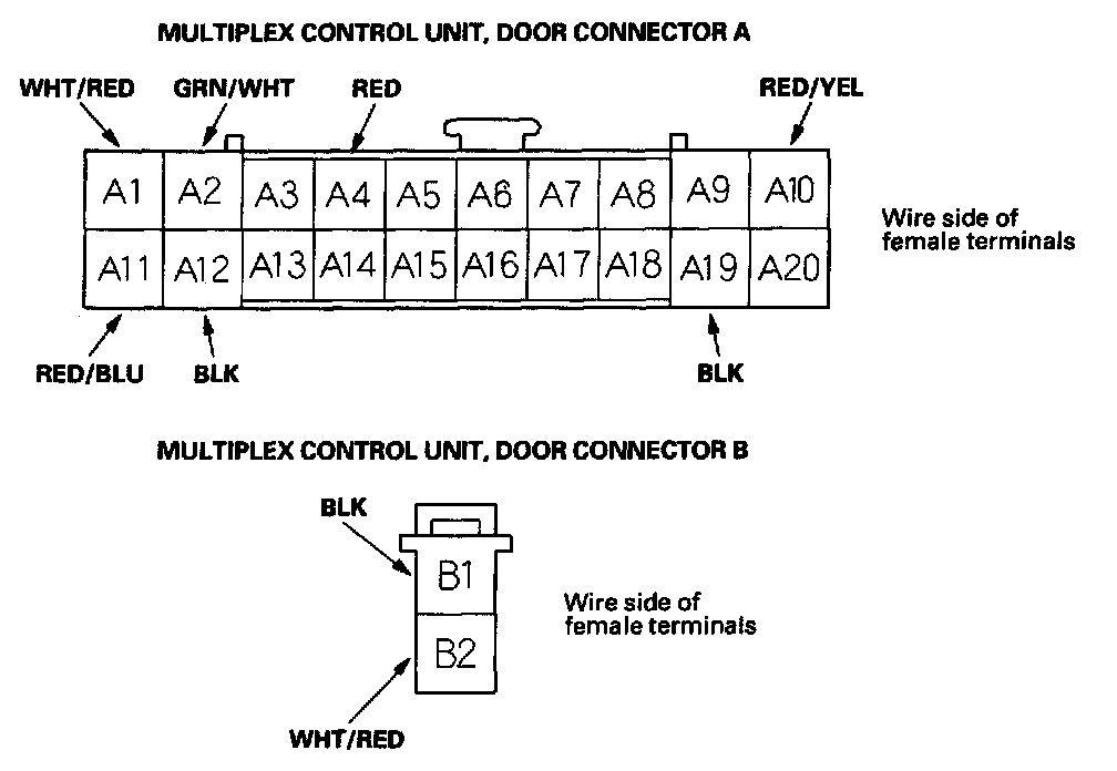 12. With the door multiplex control unit still disconnected, make these input tests at the connectors.