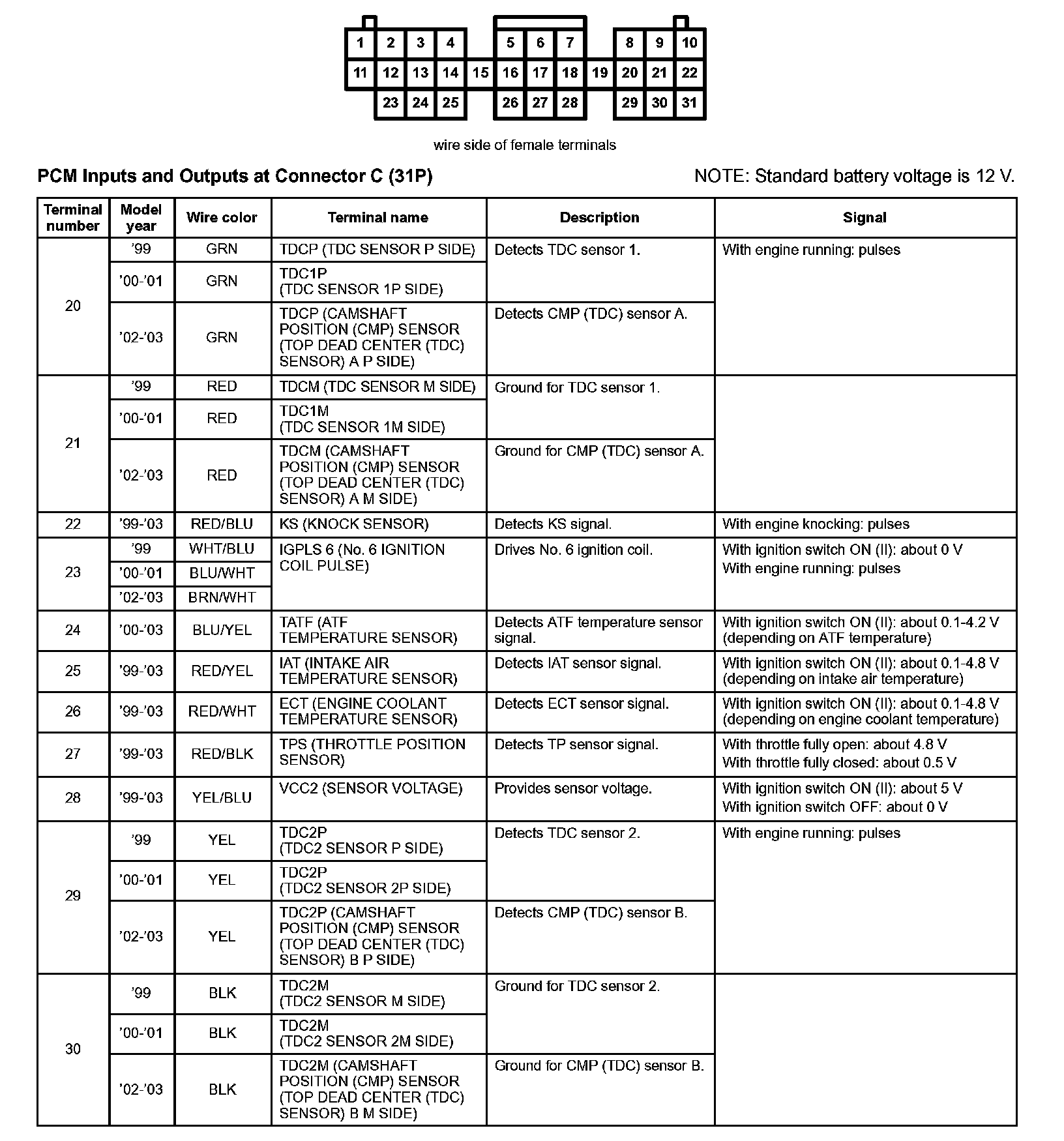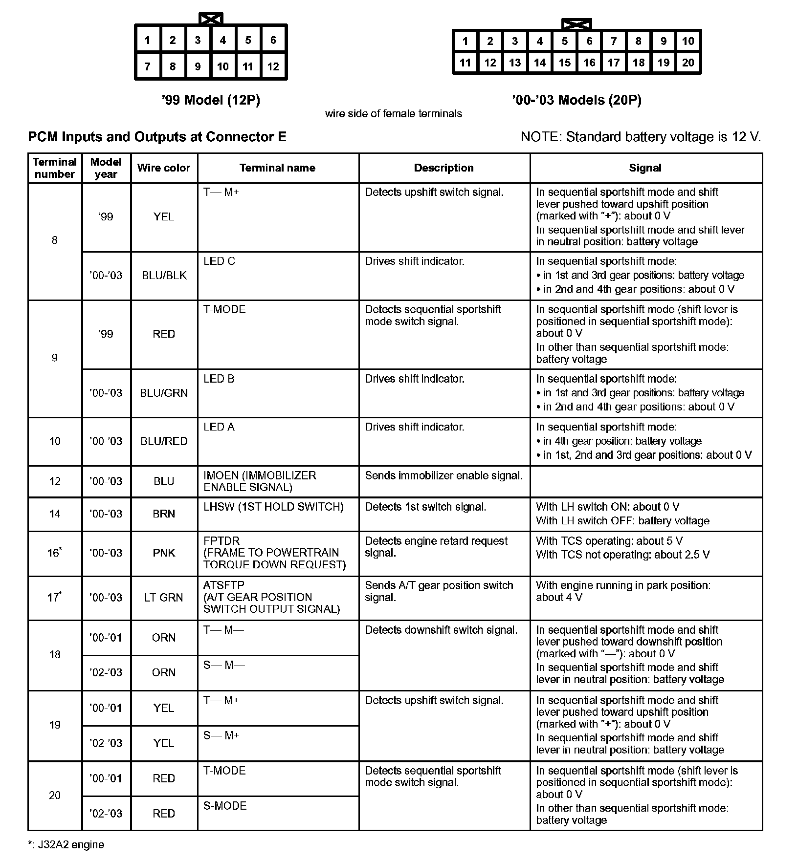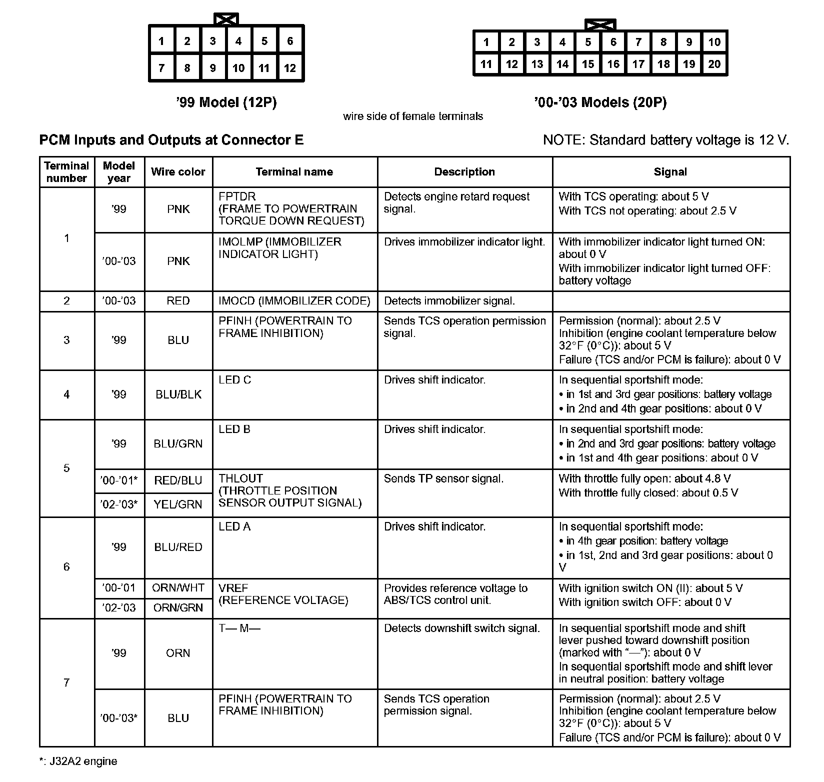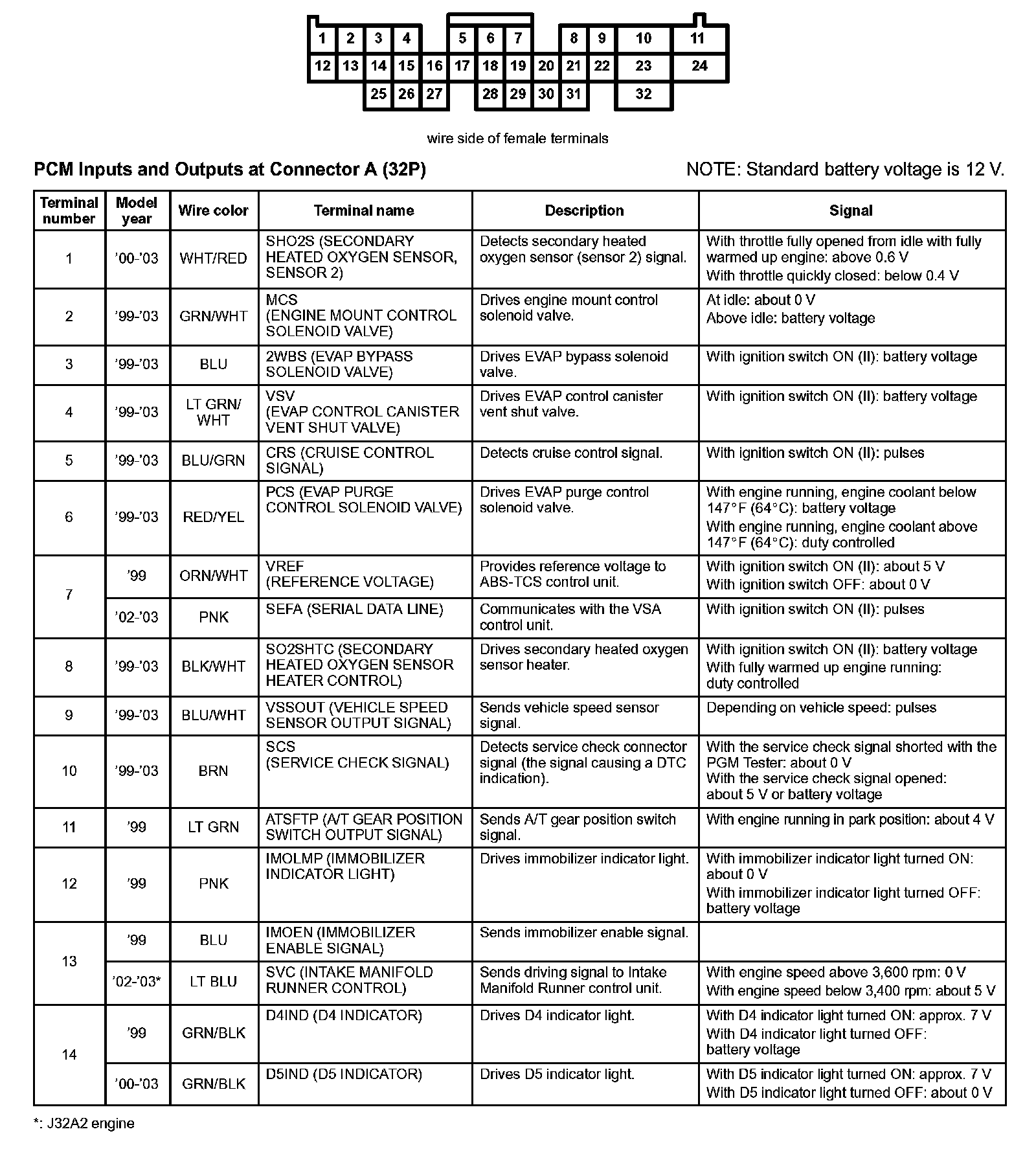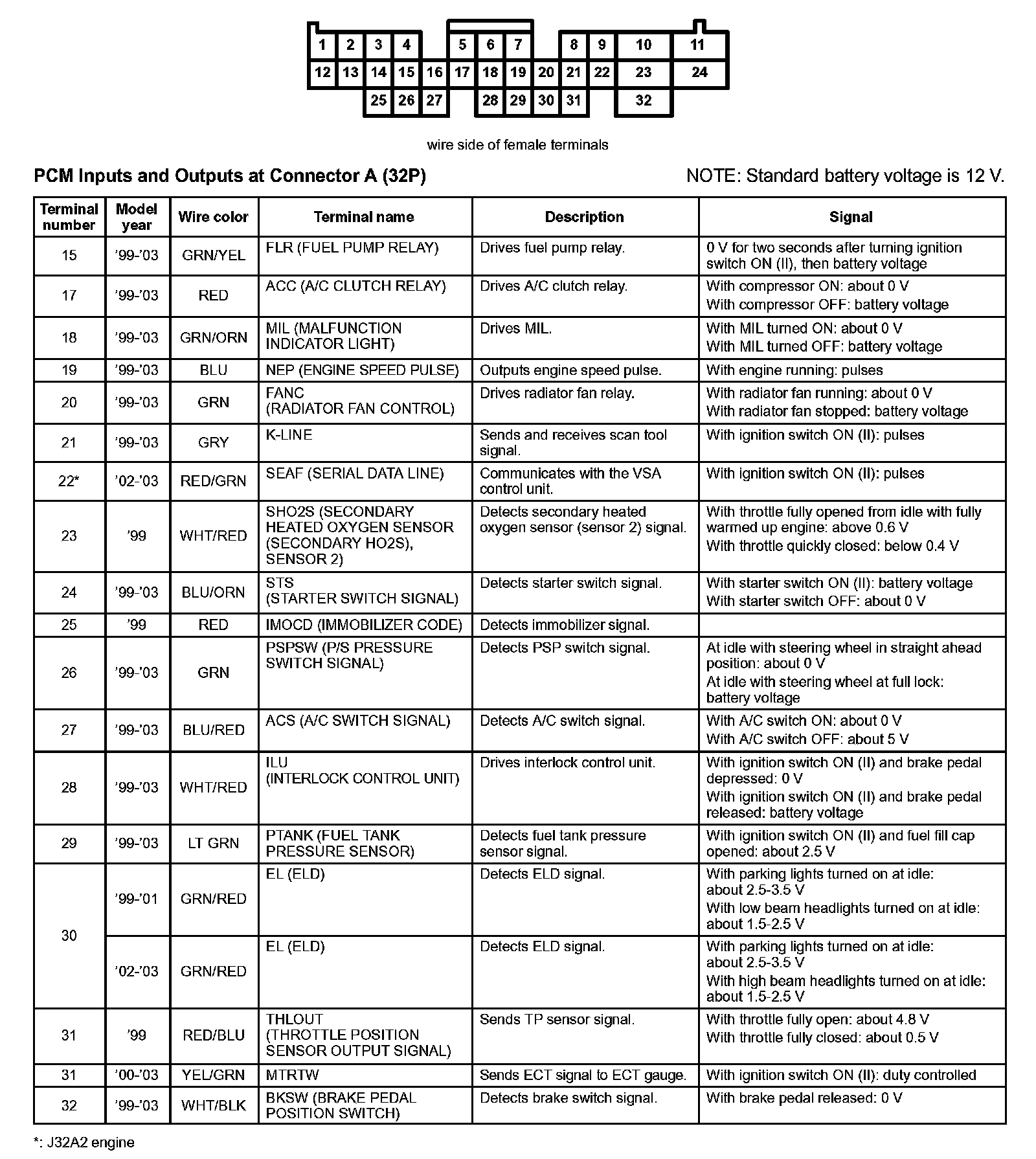 Home >> Acura >> 2002 >> 3.2TL V6-3.2L SOHC >> Repair and Diagnosis >> Diagrams >> Connector Views >> Engine Control Module >> PCM Inputs and Outputs