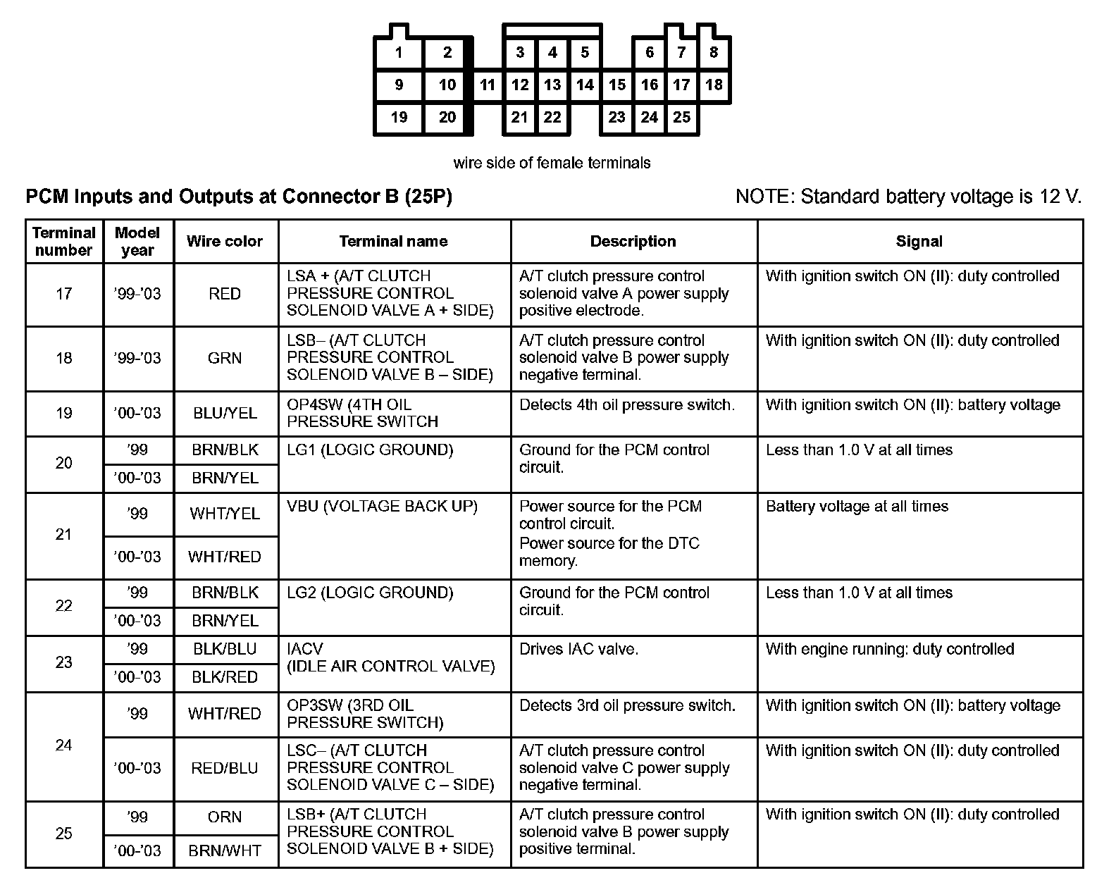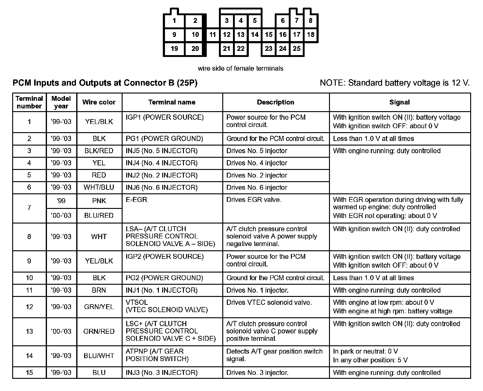 PCM Inputs And Outputs at Connector B (25P) Part 1: