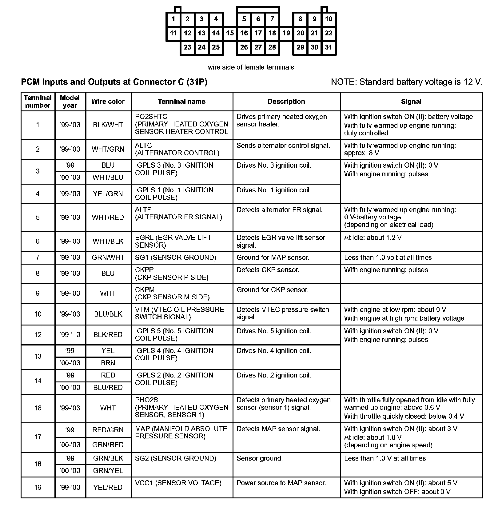 PCM Inputs And Outputs at Connector C (31P) Part 1: