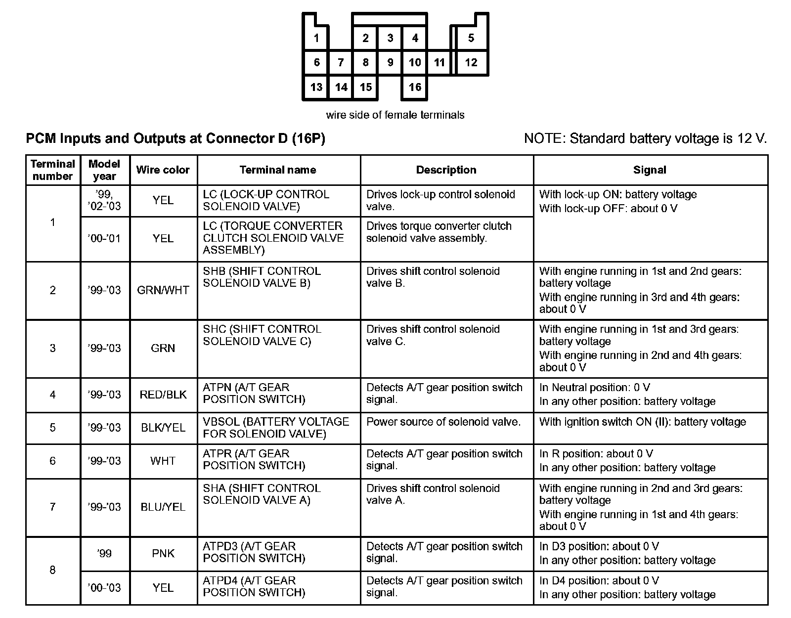 PCM Inputs And Outputs at Connector D (16P) Part 1: