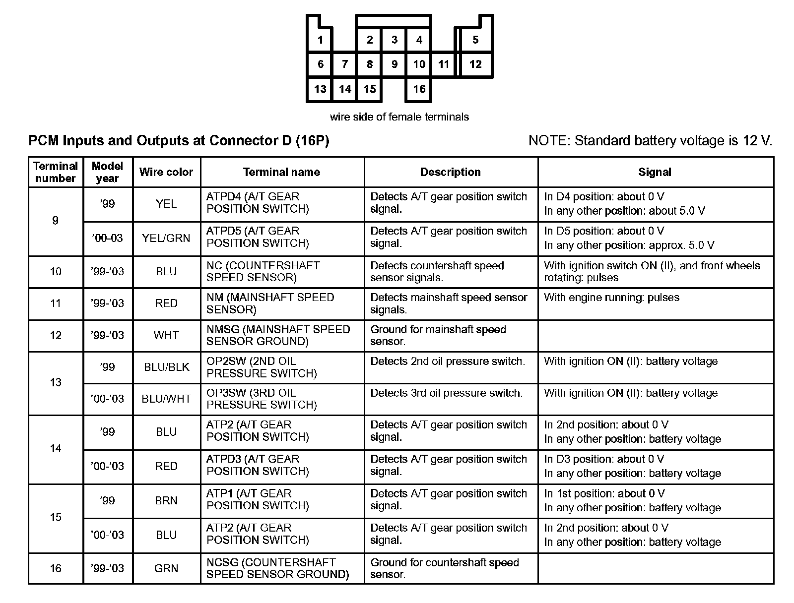 PCM Inputs And Outputs at Connector D (16P) Part 2: