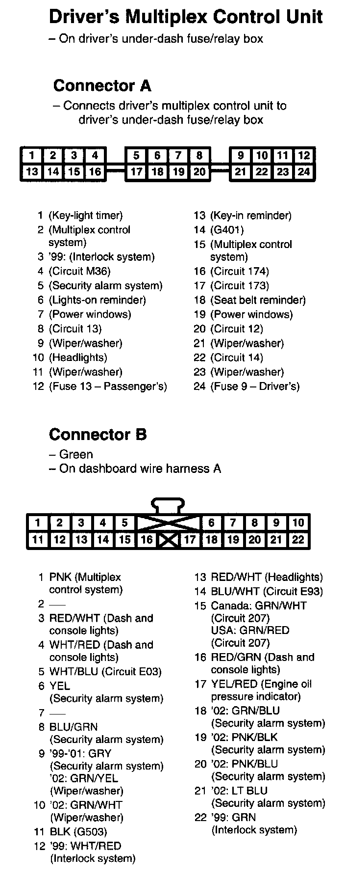 Driver's Multiplex Control Unit Connectors A, B: