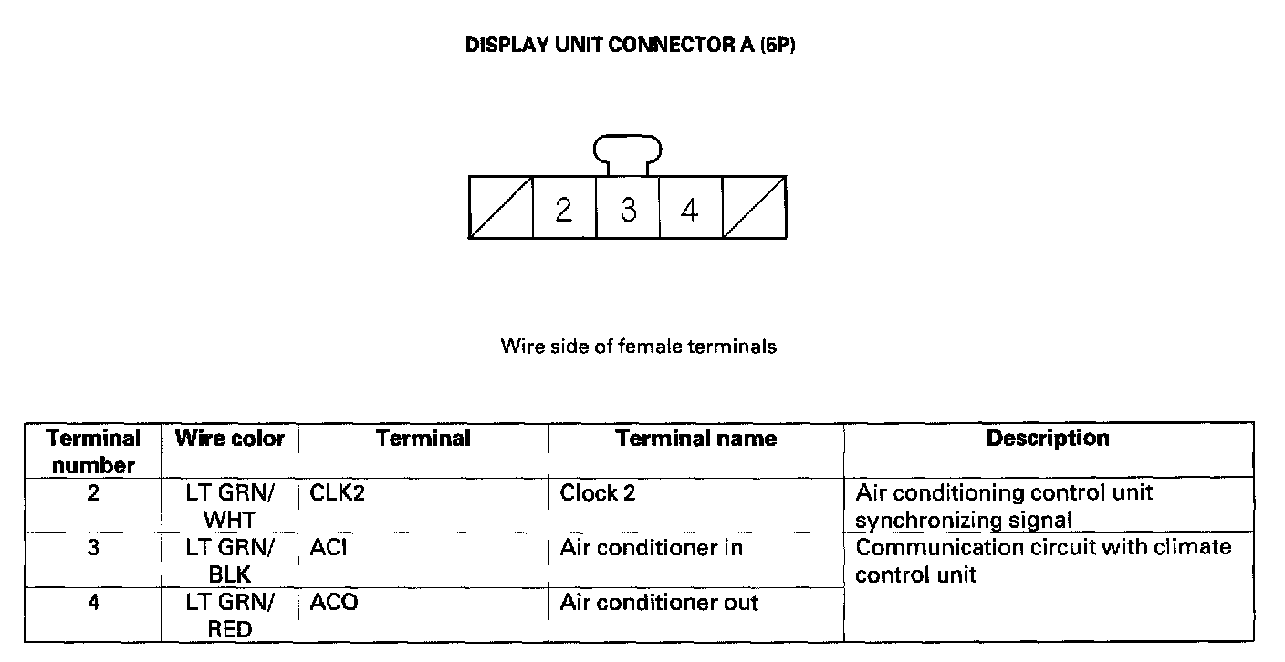 Navigation Unit Inputs And Outputs For Connector A (5P):