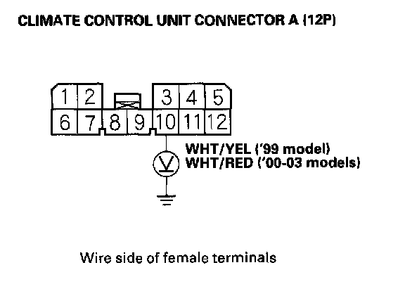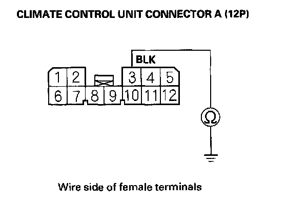 7. Check for continuity between the No. 3 terminal of climate control unit connector A (12P) and body ground.
