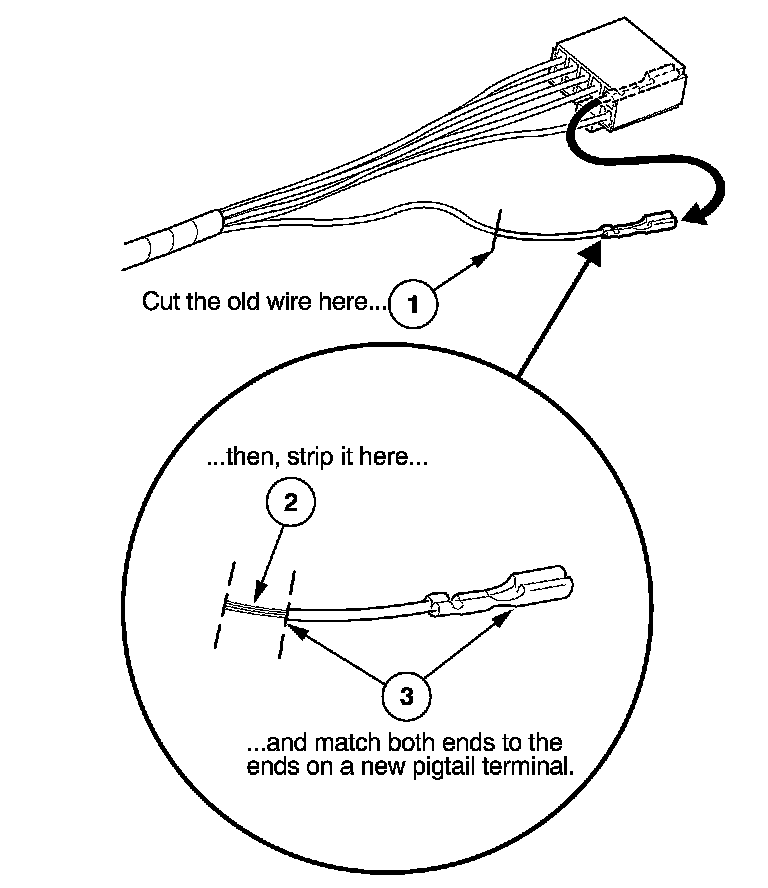 3. Select a pigtail terminal that matches the original wire at both ends (same kind of terminal and same diameter bare wire).