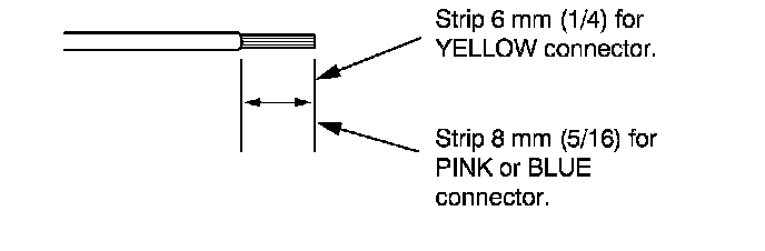 7. If you are using a yellow splice connector, strip about 6 mm (1/4 inch) of insulation off the ends of both wires. If you are using a pink or blue splice connector, strip off about 8 mm (5/16 inch) of insulation.