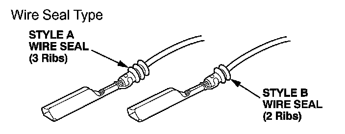Select the proper size pigtail terminal by matching the replacement terminal part number and the wire size being repaired to the corresponding pigtail terminal part number. Then use the color (size) splice connector listed. In some instances you may also have to match the wire seal style to select the proper pigtail terminal. Pigtail terminals are available through your parts department, in quantities of 10, using normal parts ordering procedures.