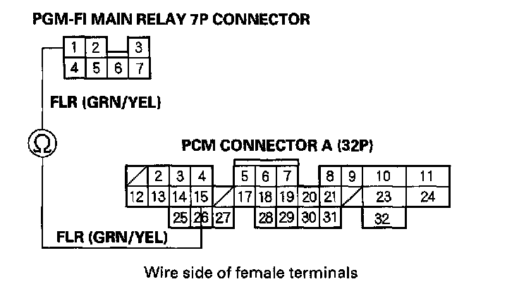 13. Check for continuity between PGM-FI main relay 7P connector terminal No.1 and PCM connector terminal A15.