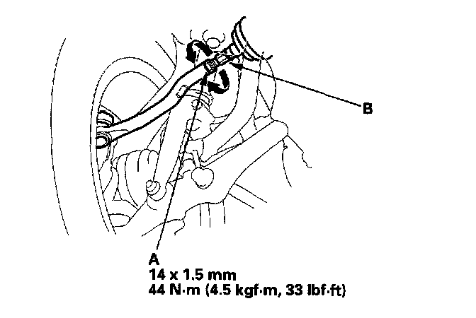 3. Remove the flange bolts at the radius rod (B) on the lower arm, and remove the radius rod.