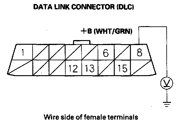 1. Measure voltage between DLC terminal No.8 and body ground.