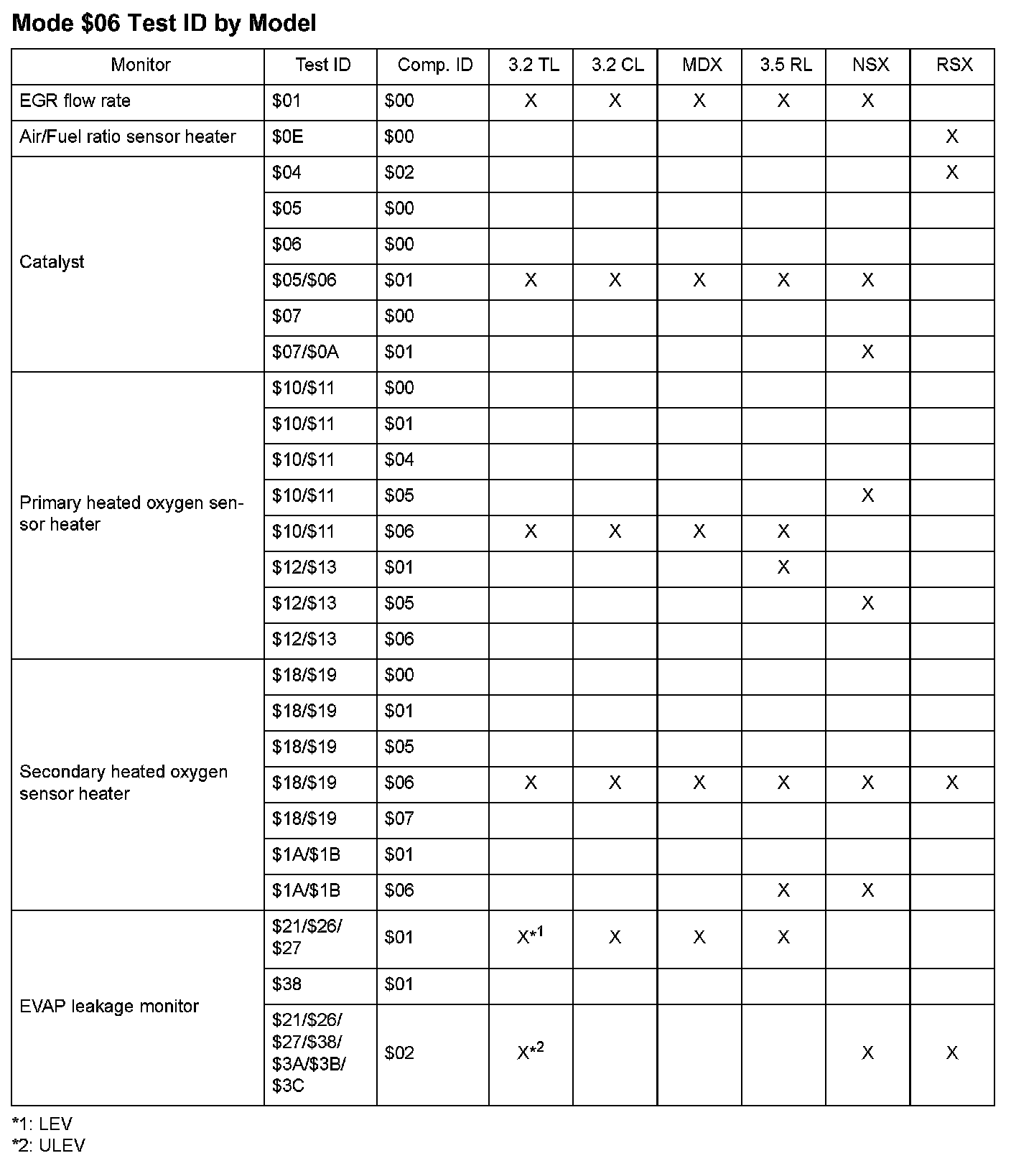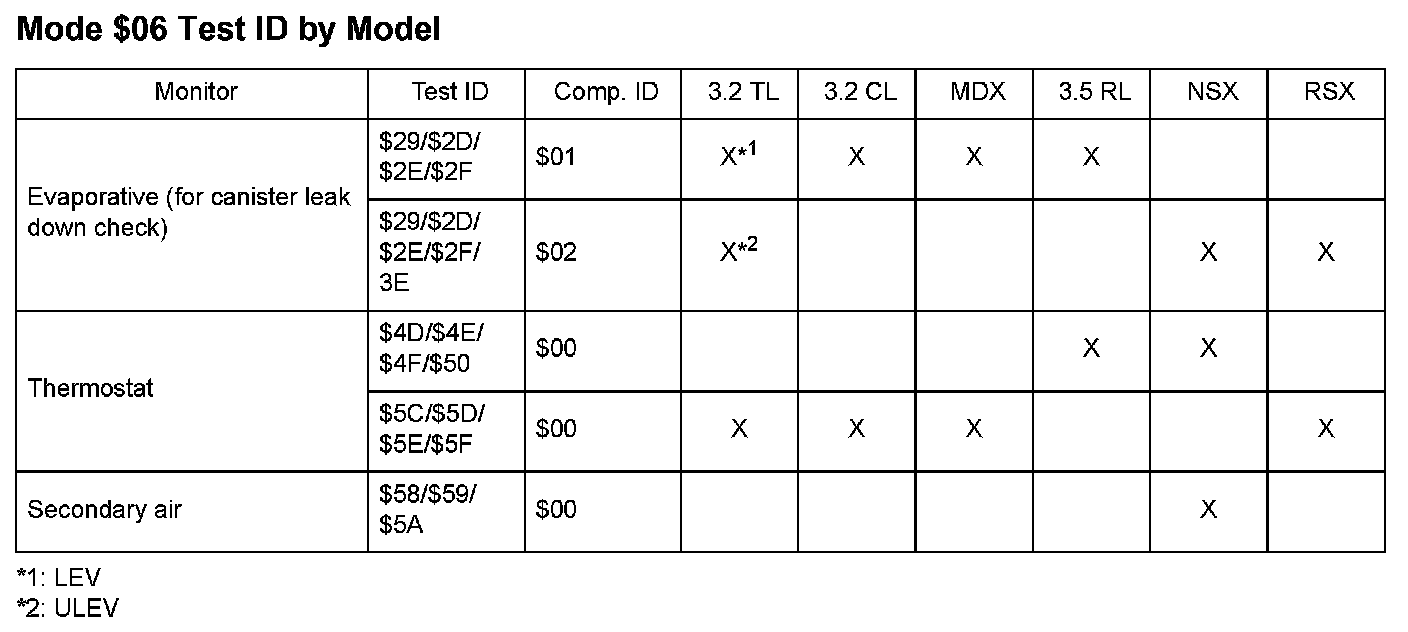 MODE $06 DATA CHARTSTest ID By Model (1 of 2):