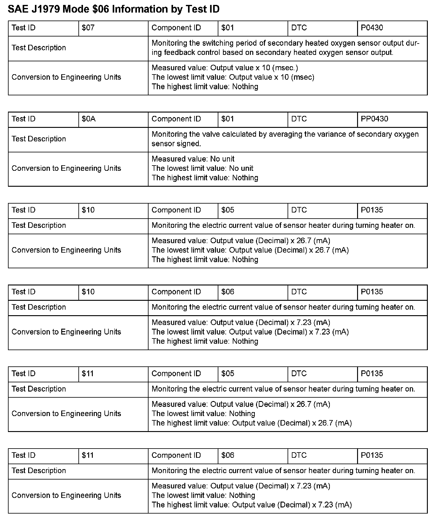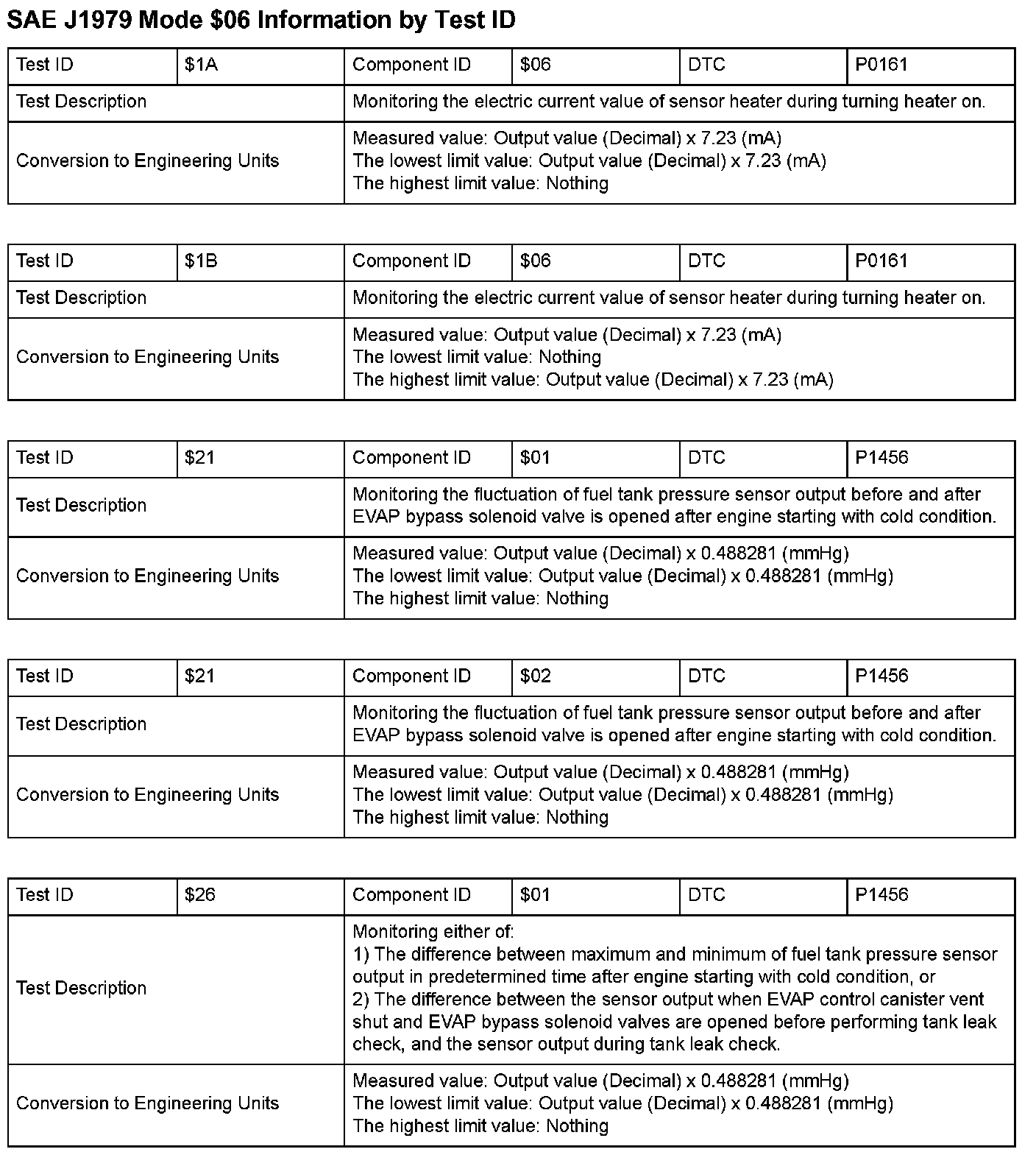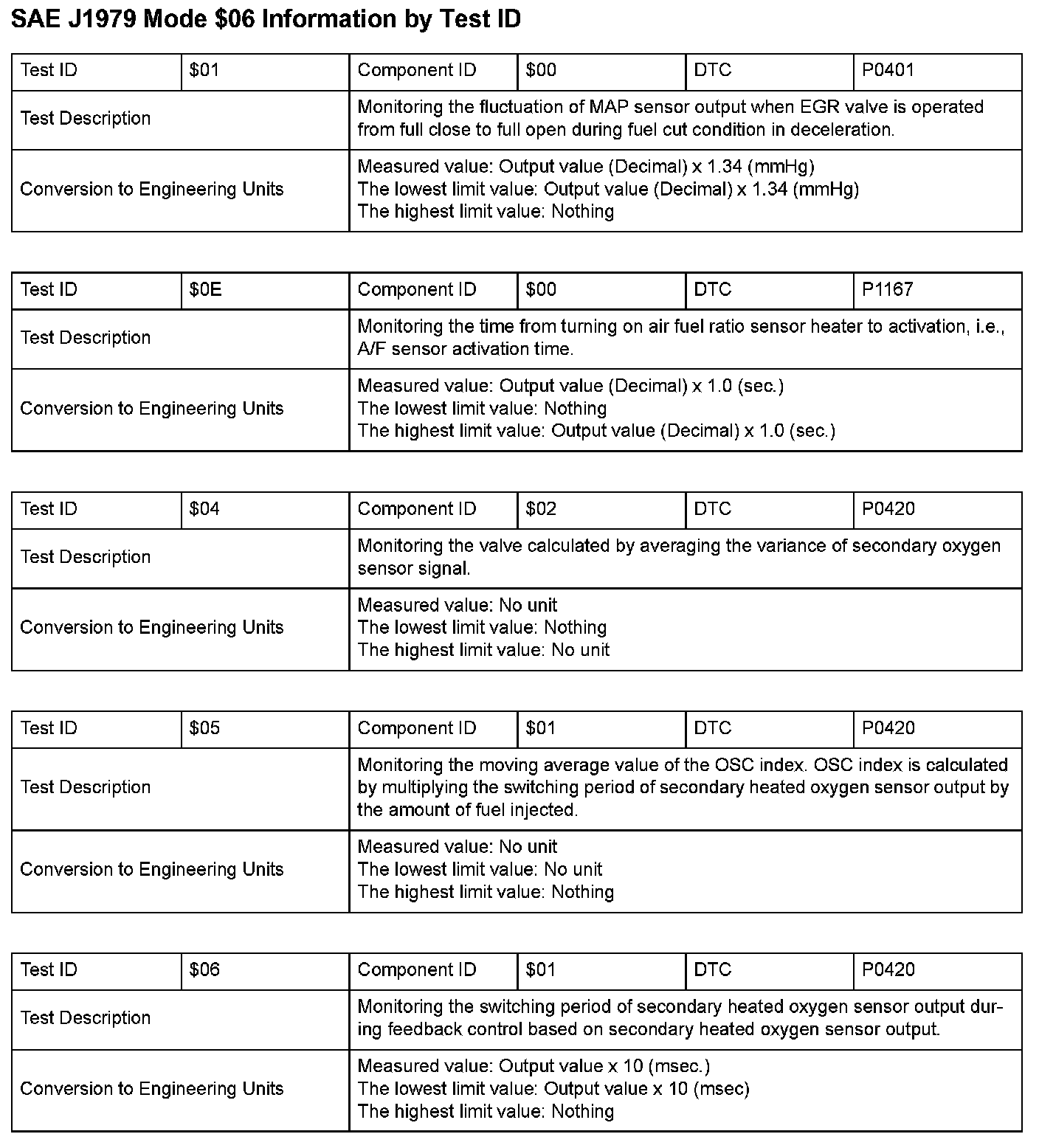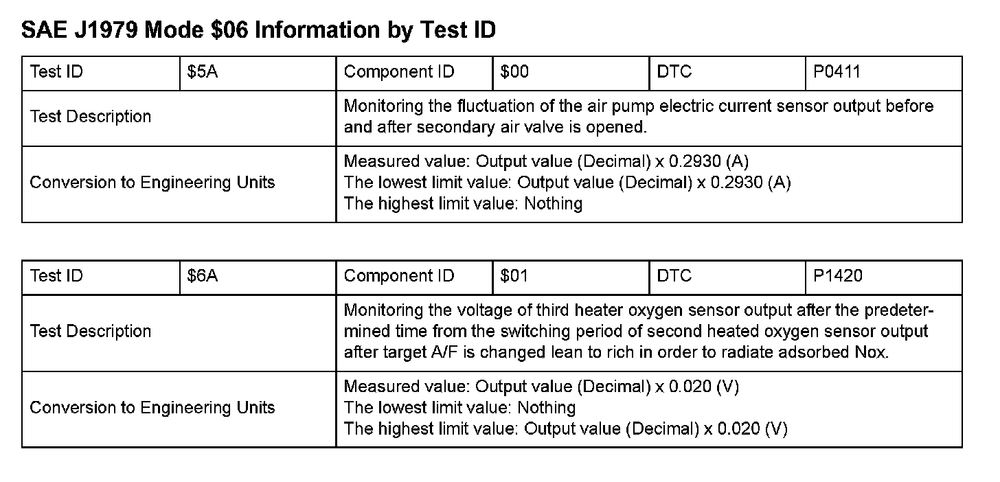 SAE J1979 Information By Test ID ($01 - $06):