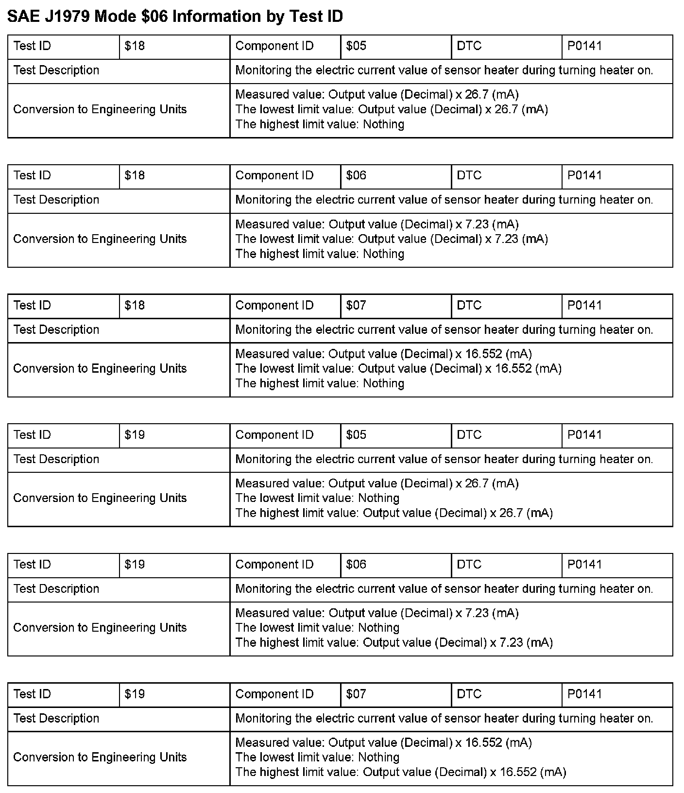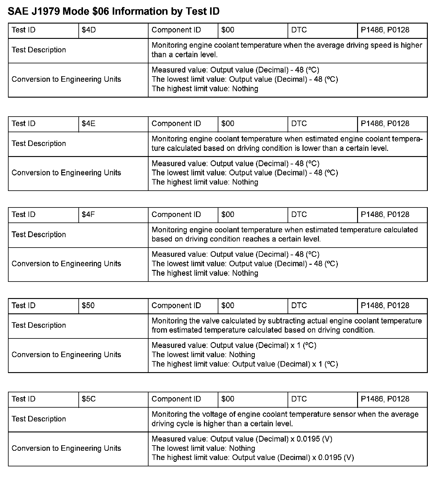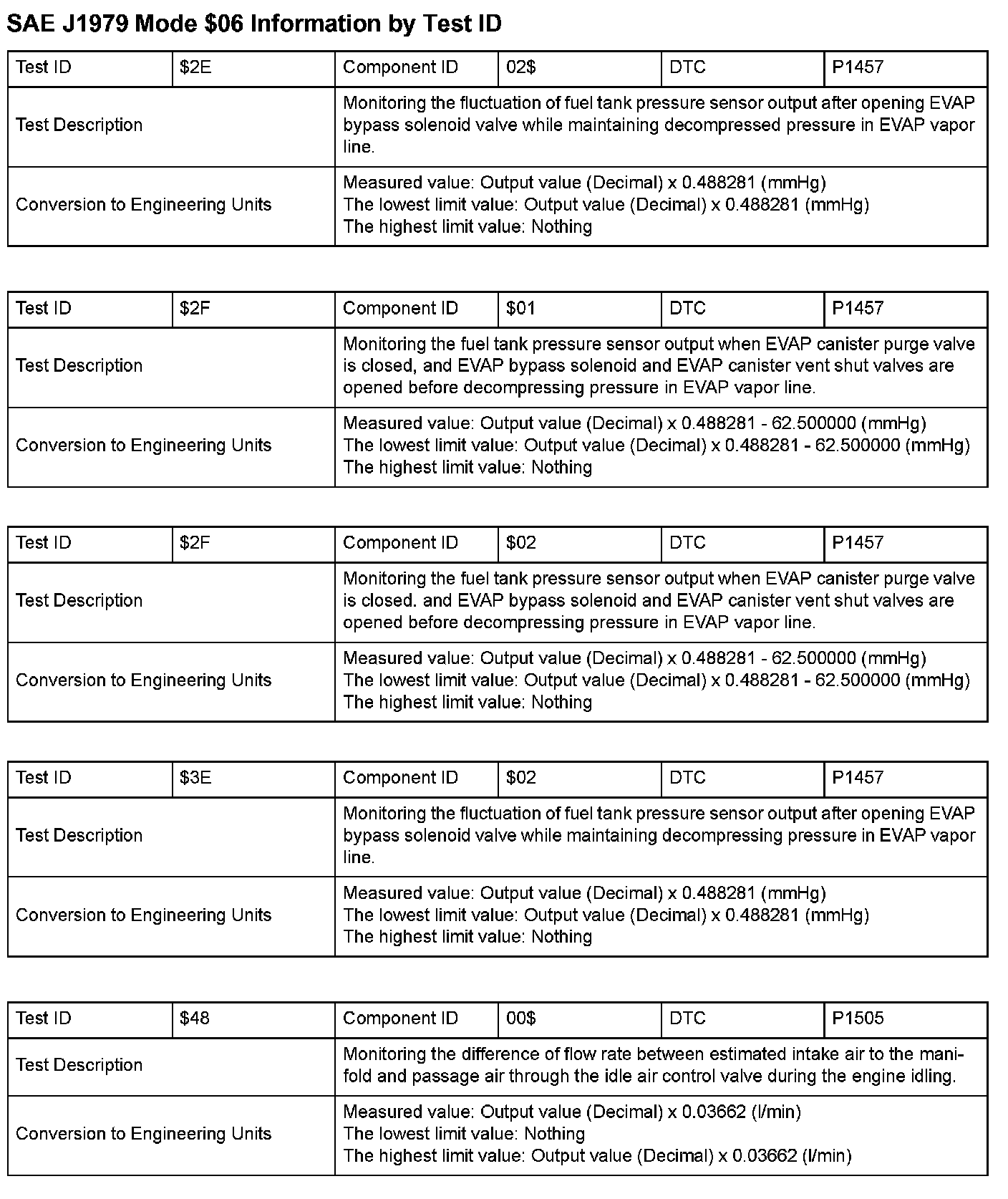 SAE J1979 Information By Test ID ($01 - $06):