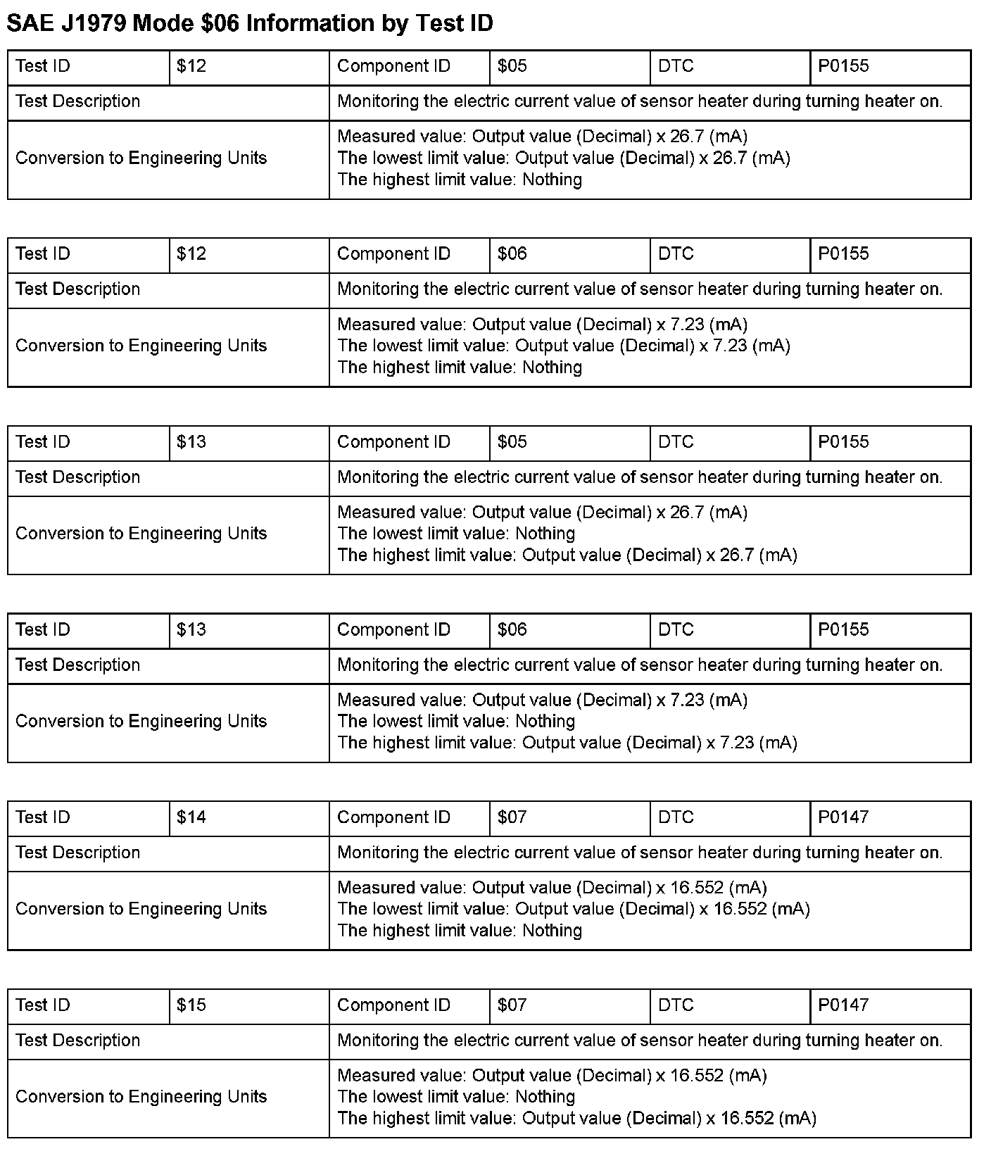 SAE J1979 Information By Test ID ($12 - $15):