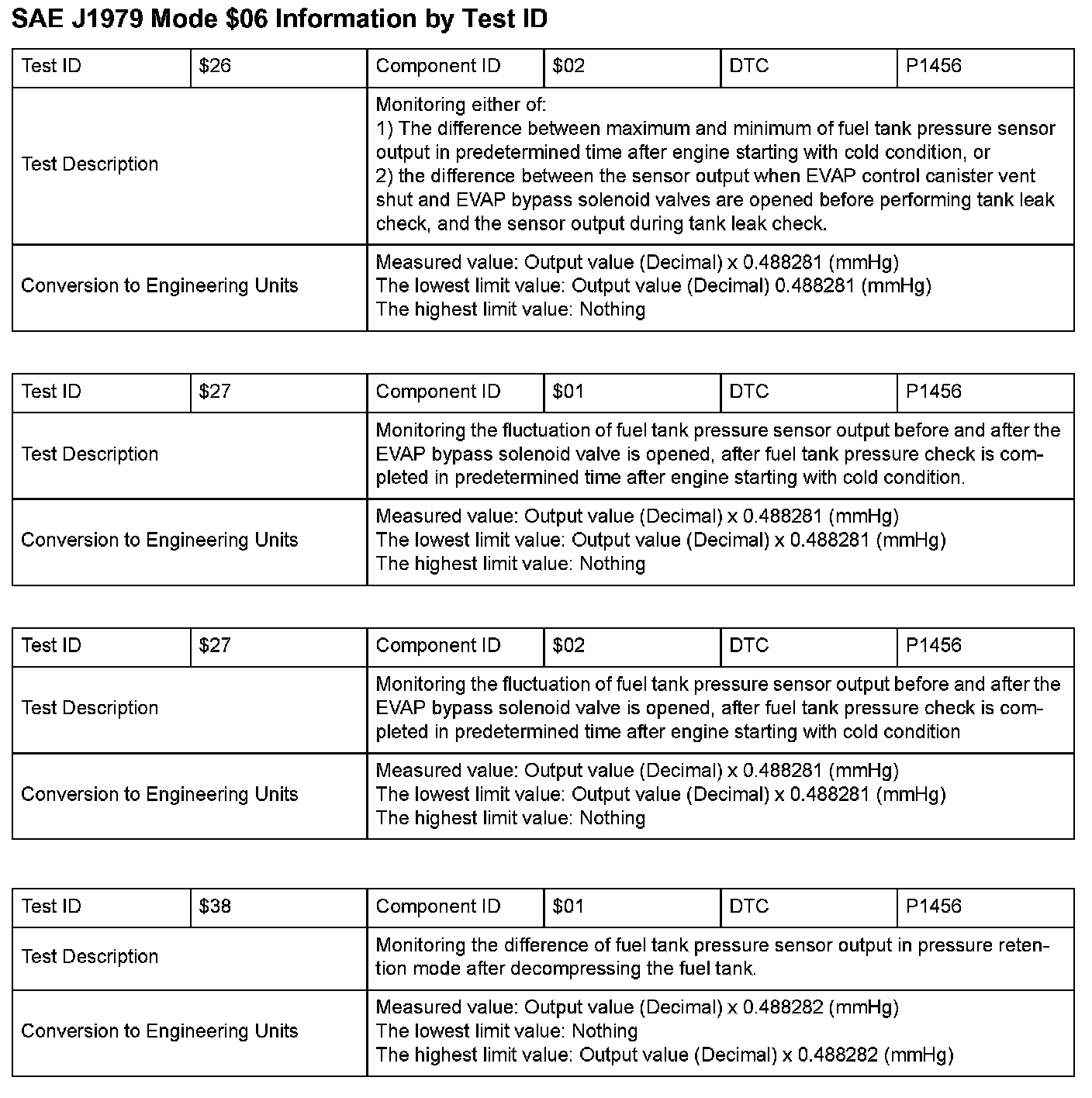 SAE J1979 Information By Test ID ($26 - $38):