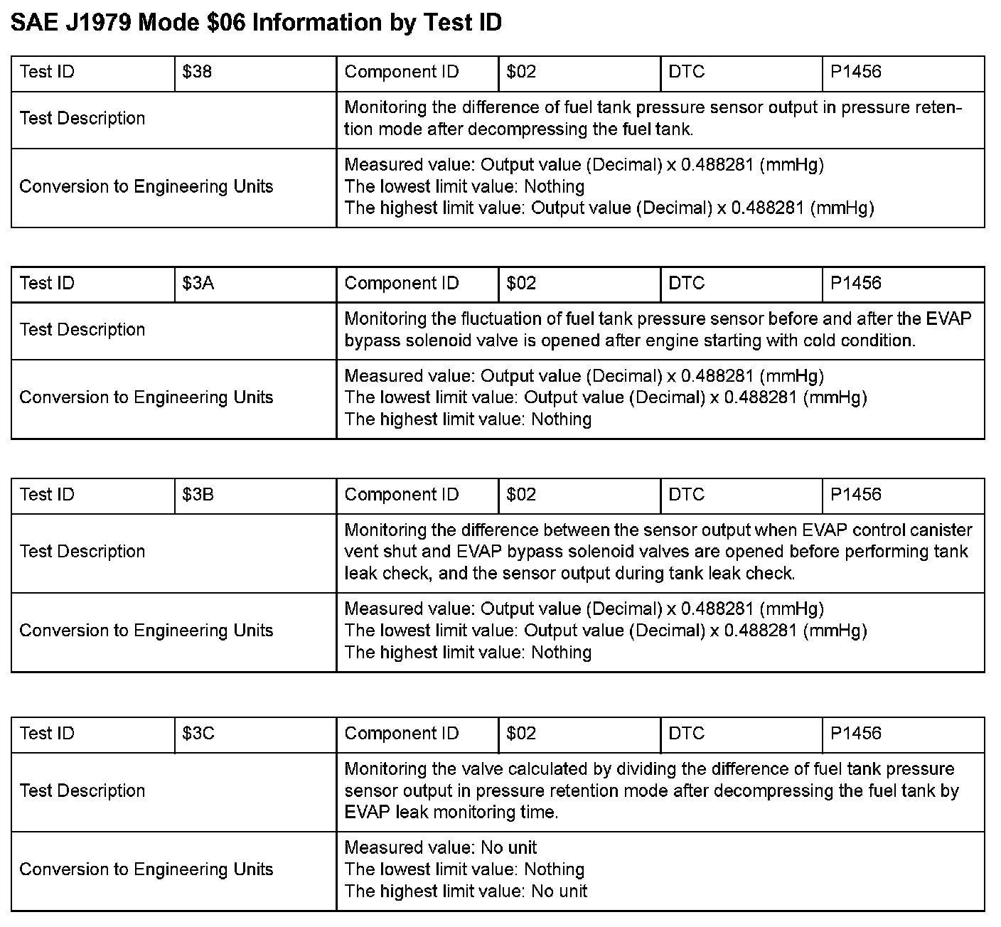 SAE J1979 Information By Test ID ($38 - $3C):