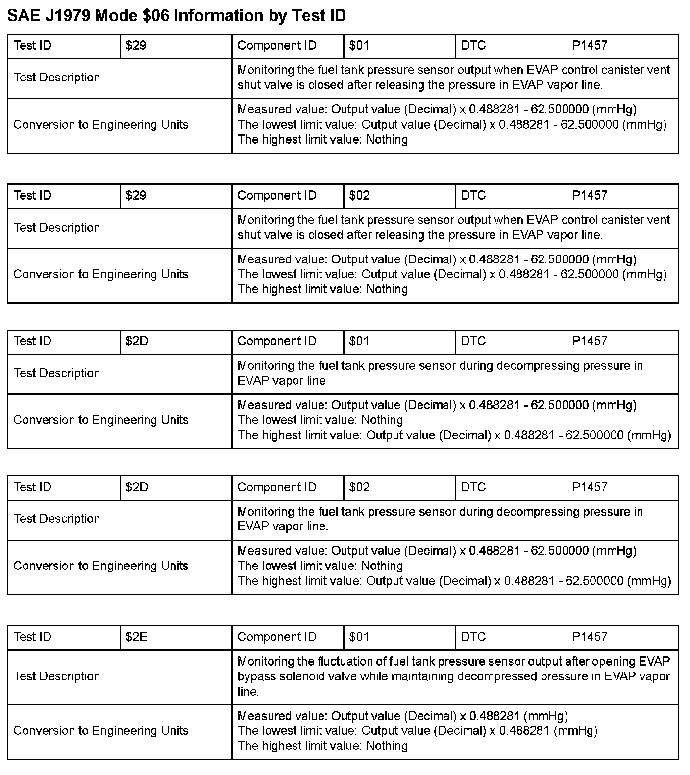 SAE J1979 Information By Test ID ($29 - $2E):