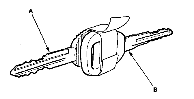 5. Tape the donor vehicle's ignition key head-to-head to the test vehicle's temporary key (A). The PCM will recognize the code from the donor vehicle's key (B) and allow you to start the engine with the temporary key.