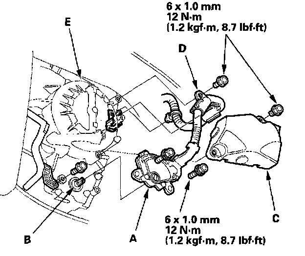 9. Install the transmission range switch cover (C), and the harness holder (D) on the end cover (E).