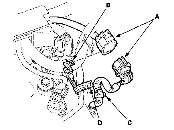 10. Connect the transmission range switch connector (A), then install it on the connector bracket (B).