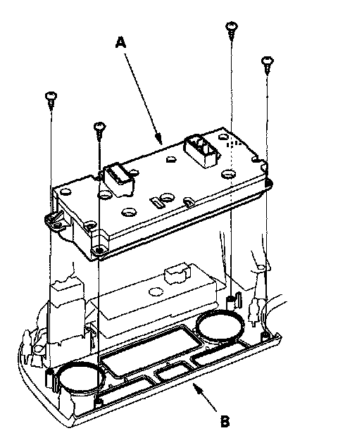 3. Remove the screws and climate control unit (A) from the audio unit (B).