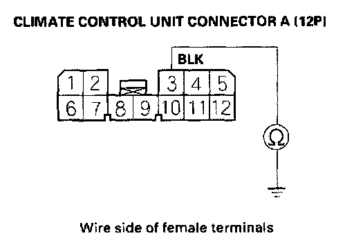 7. Check for continuity between the No. 3 terminal of climate control unit connector A (12P) and body ground.