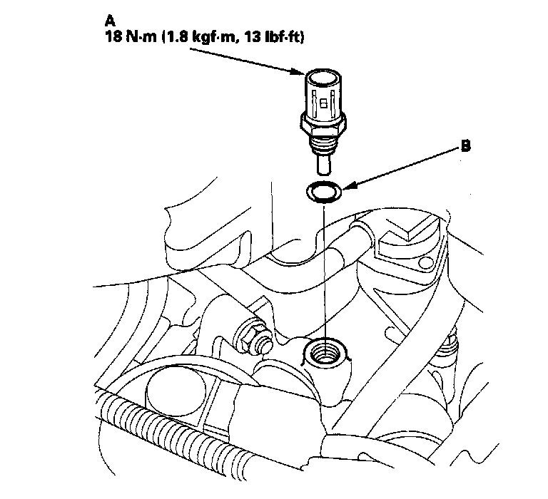 Install the ECT sensor using a new O-ring (B).