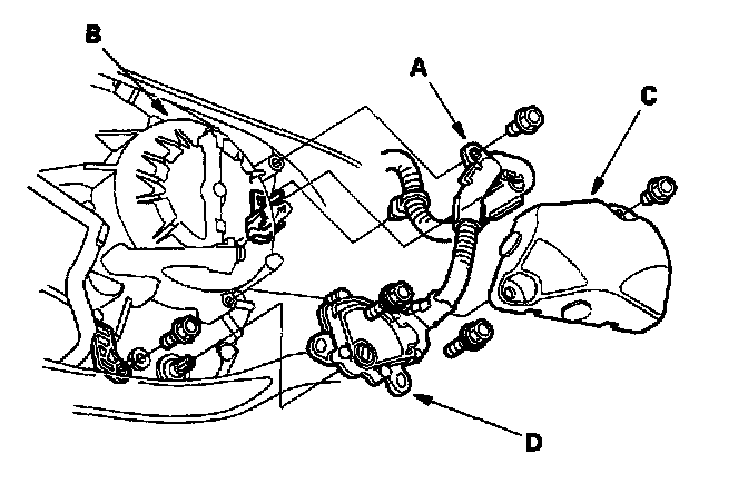 6. Remove the transmission range switch cover (C), then remove the transmission range switch (D) from the end cover.