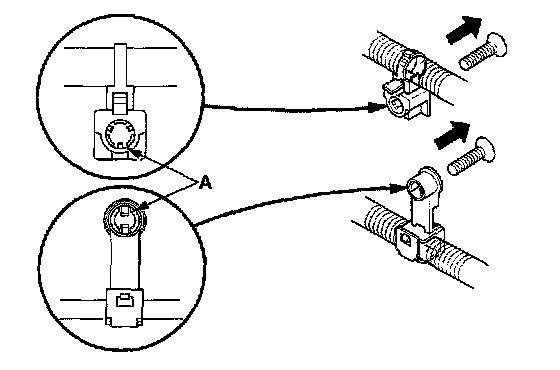 - Slip pliers (A) under the clip base and through the hole at an angle, then squeeze the expansion tabs to release the clip.