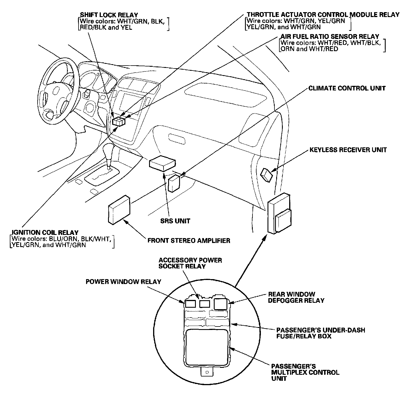 Dashboard - Relay And Control Unit Locations: