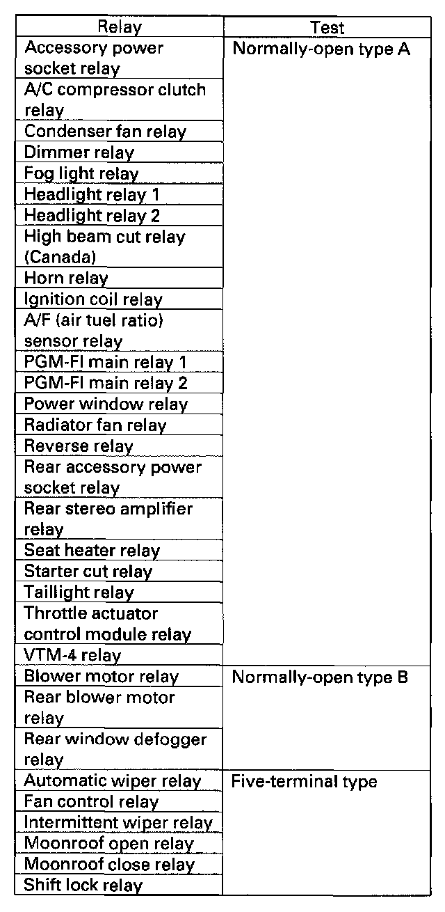 Power Relay TestUse this chart to identify the type of relay, then do the test listed for it.