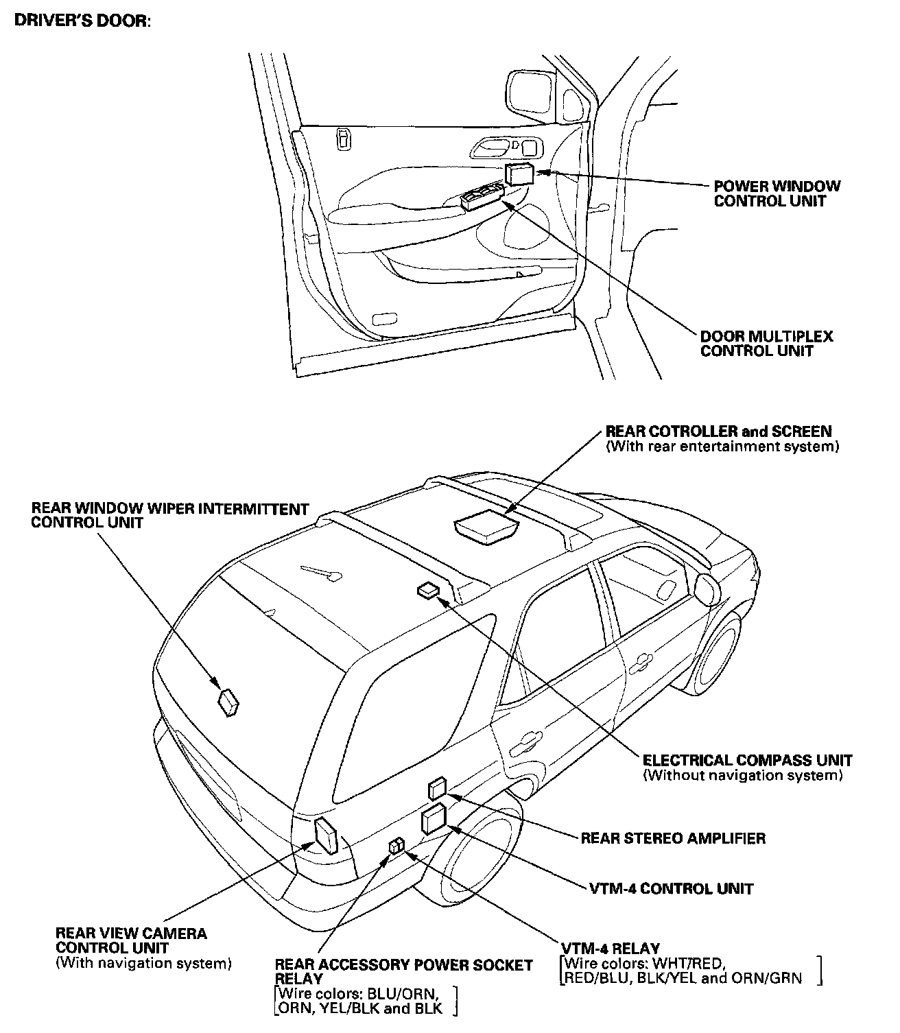 Door, Rear Side Trim And Roof - Relay And Control Unit Locations: