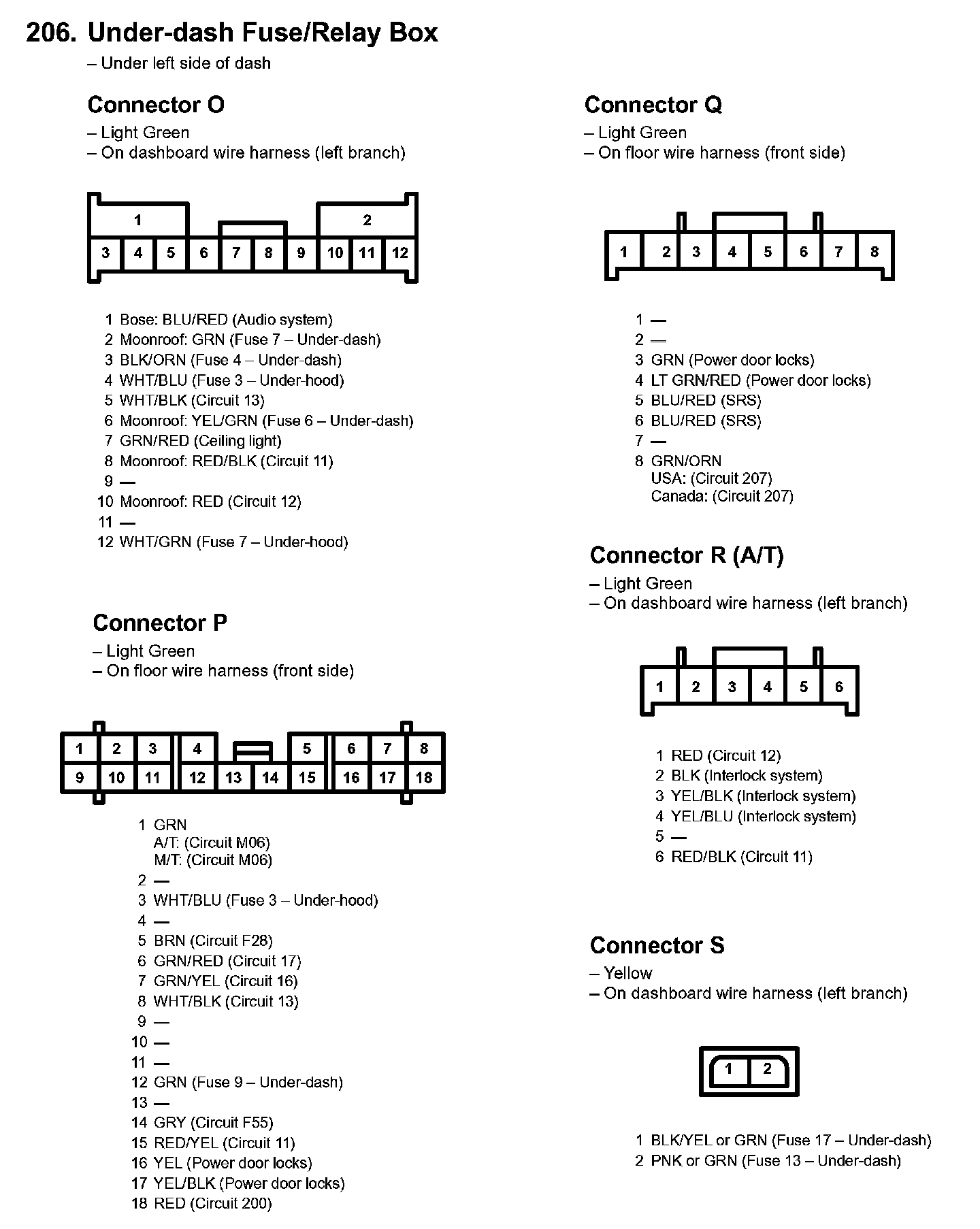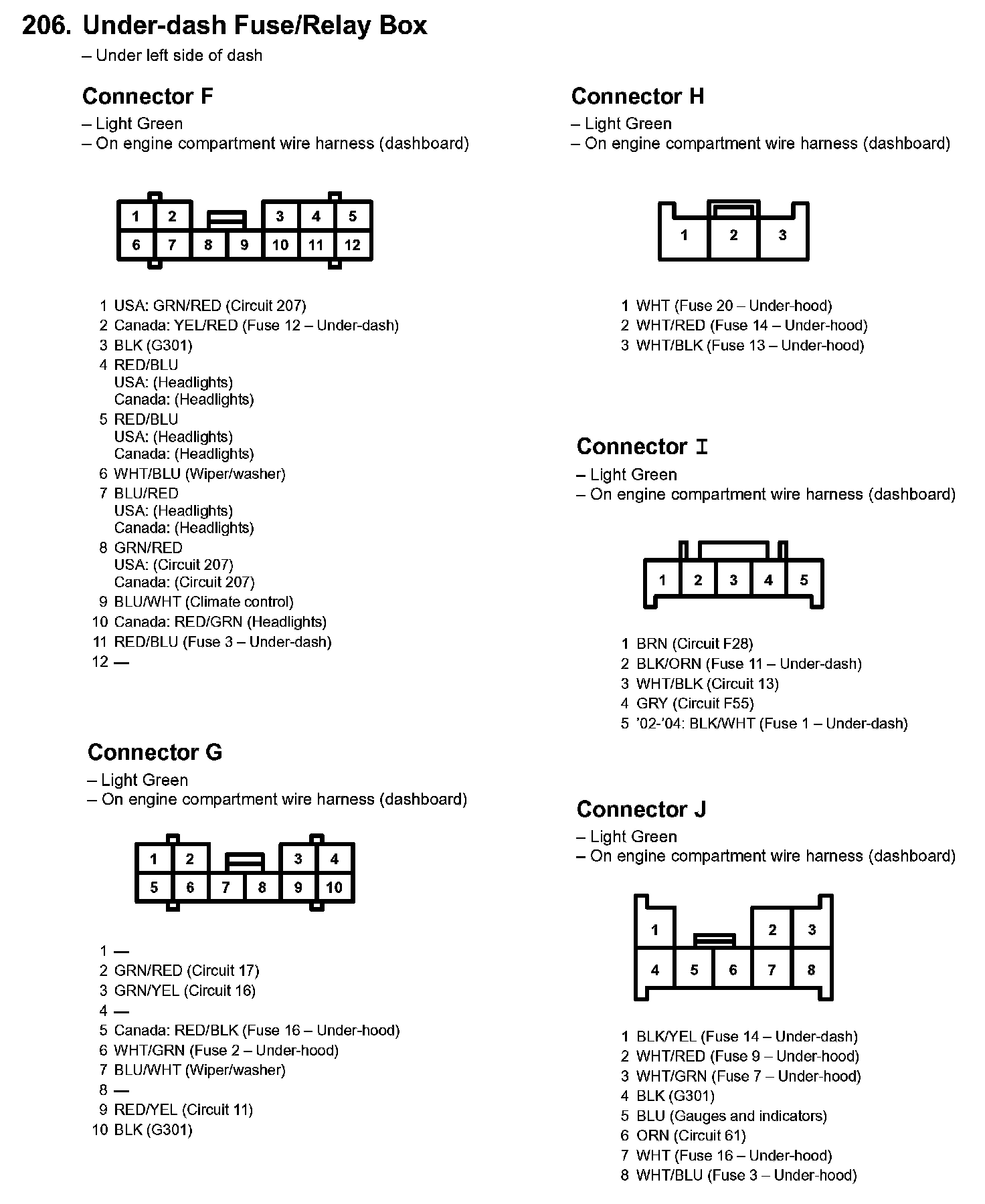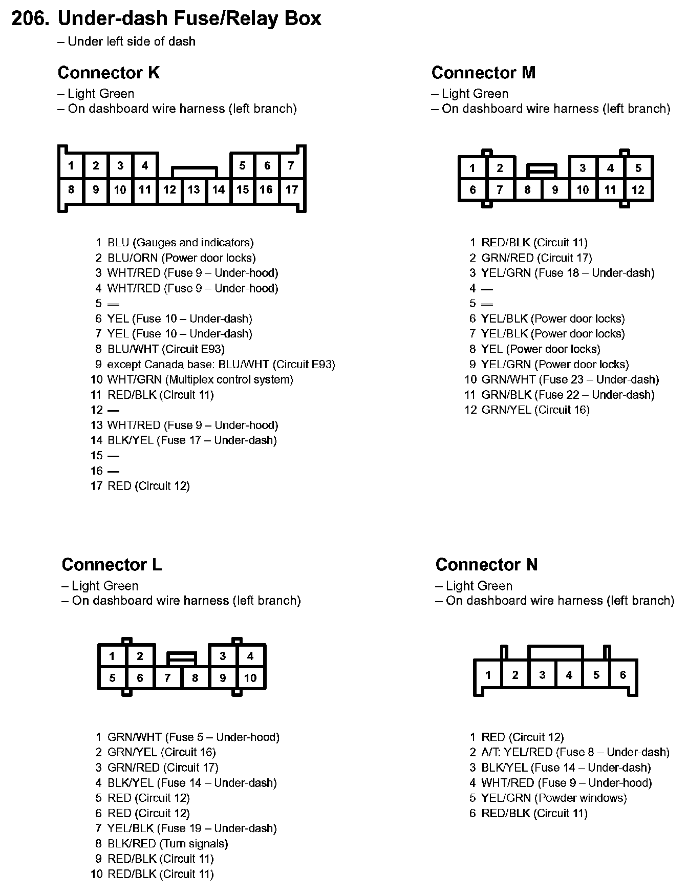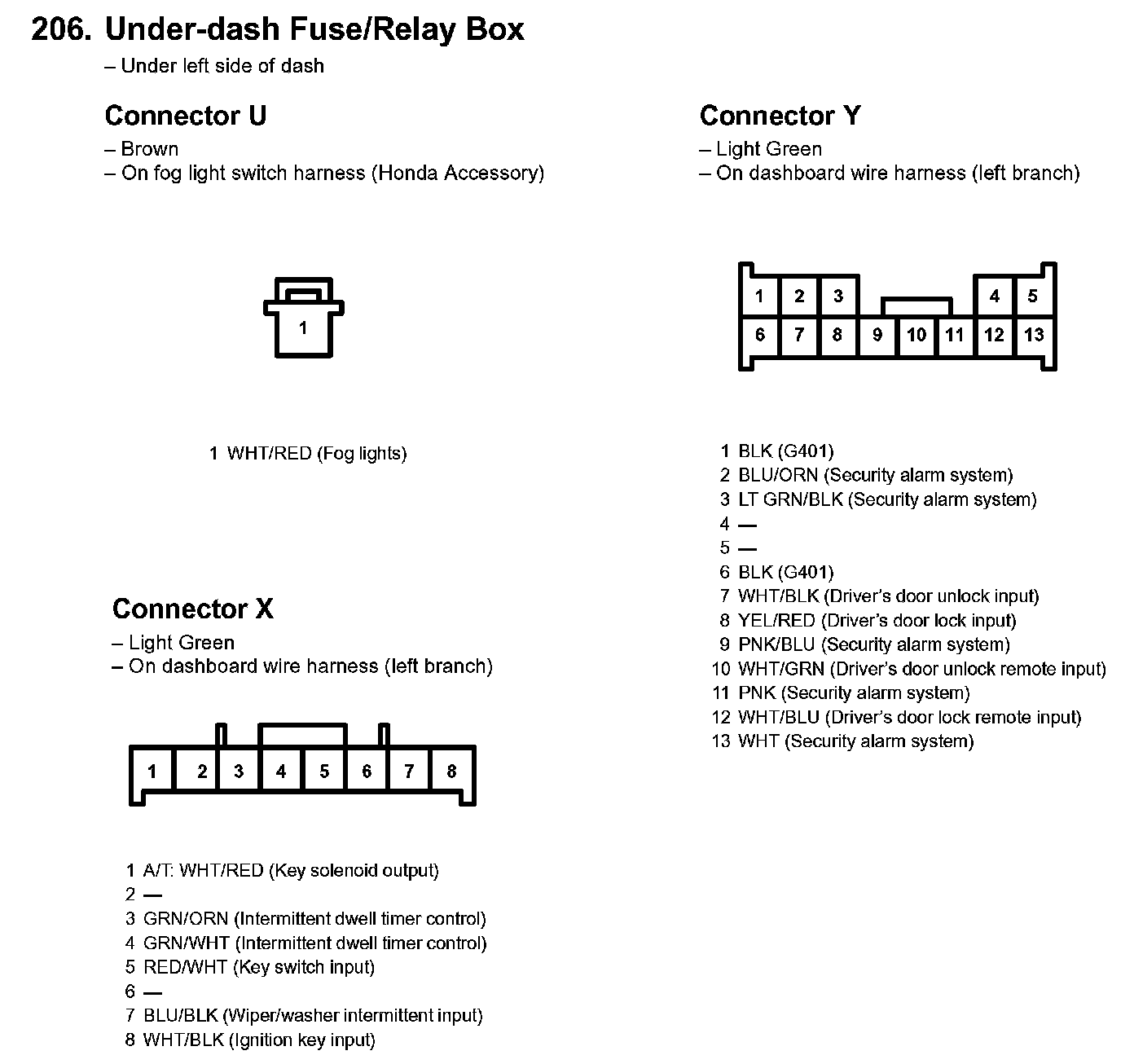 206. Under-dash Fuse/Relay Box: