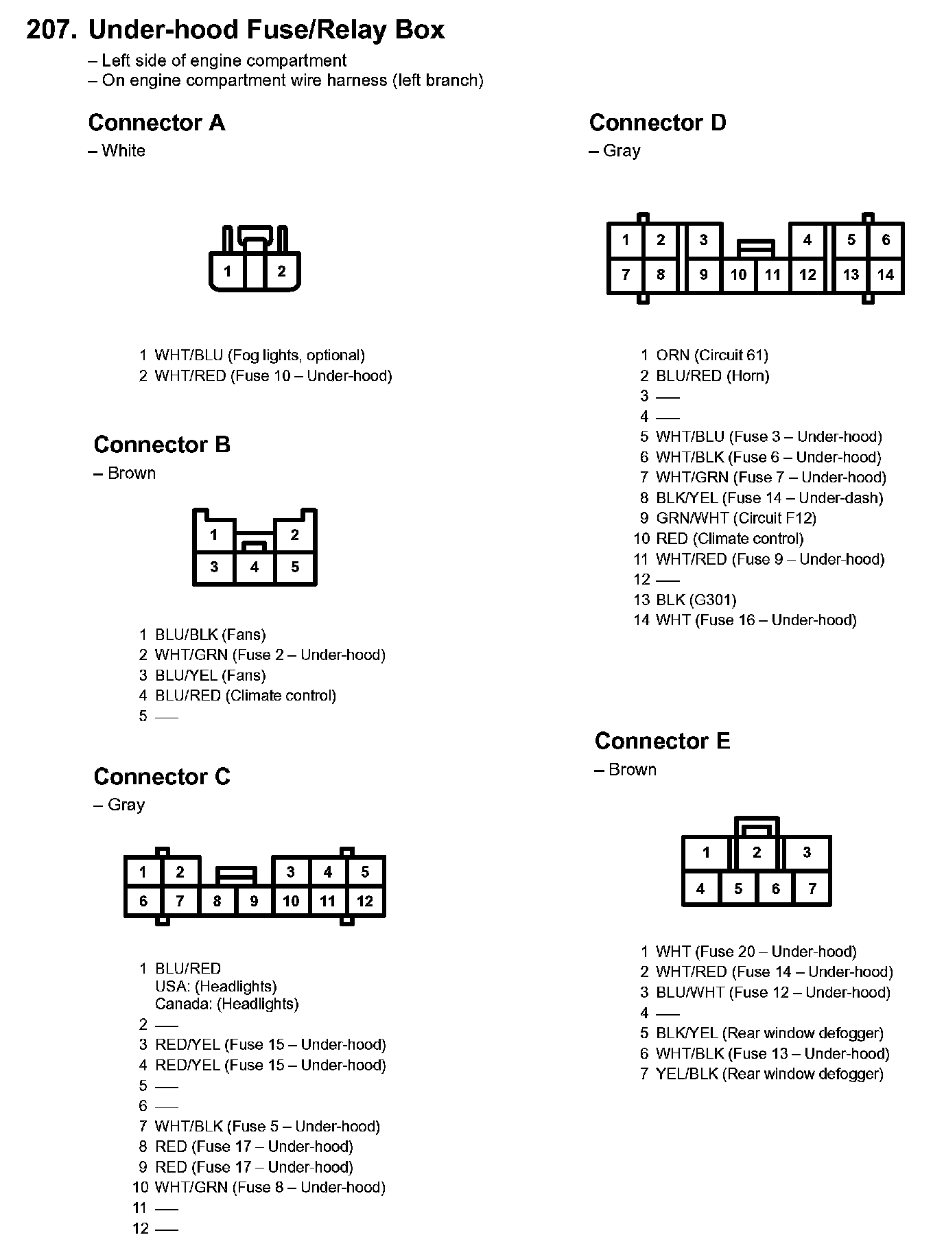 207. Under-hood Fuse/relay Box: