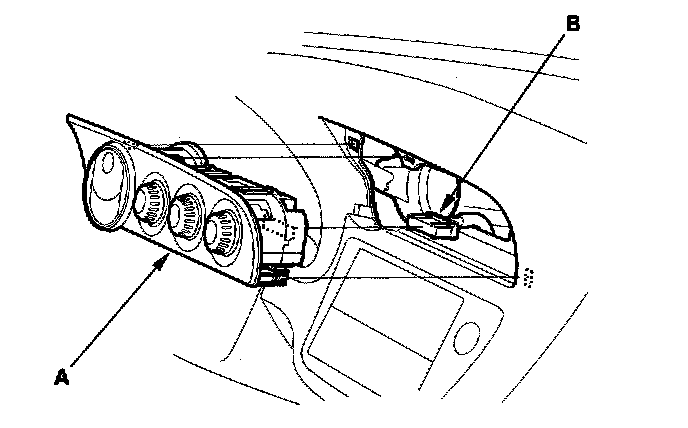1. Remove the climate control unit (A) from the dashboard, then disconnect the 30P connector (B). Be careful not to damage the control unit and the dashboard.