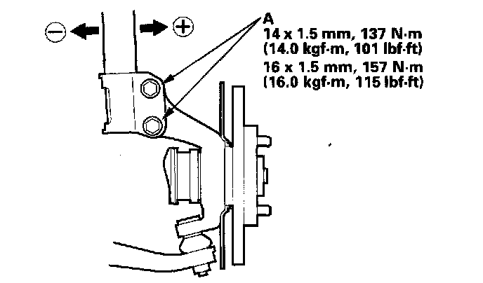 7. Replace the damper pinch bolts with the adjusting bolts (A), and adjust the camber angle.