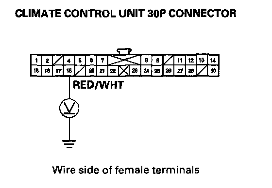 6. Measure the voltage between the No.18 terminal of the climate control unit 30P connector and body ground.