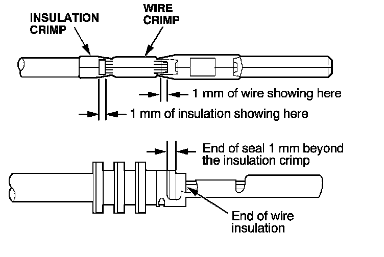 - If you do not have a wire seal, then use the next larger size crimp slot. Position the crimping tool over the insulation crimp section of the terminal, then squeeze the tool with both hands until the stops make contact.