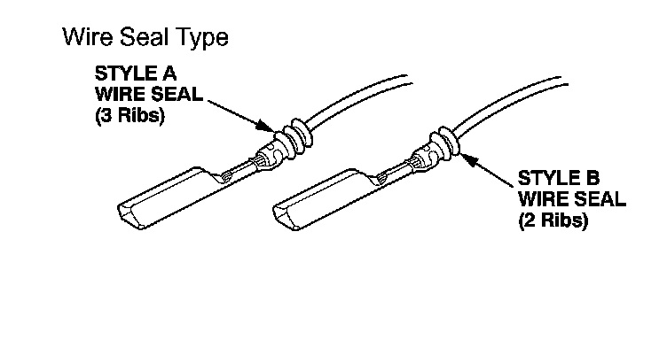 Select the proper size pigtail terminal by matching the replacement terminal part number and the wire size being repaired to the corresponding pigtail terminal part number. Then use the color (size) splice connector listed. In some instances you may also have to match the wire seal style to select the proper pigtail terminal. Pigtail terminals are available through your parts department, in quantities of 10, using normal parts ordering procedures