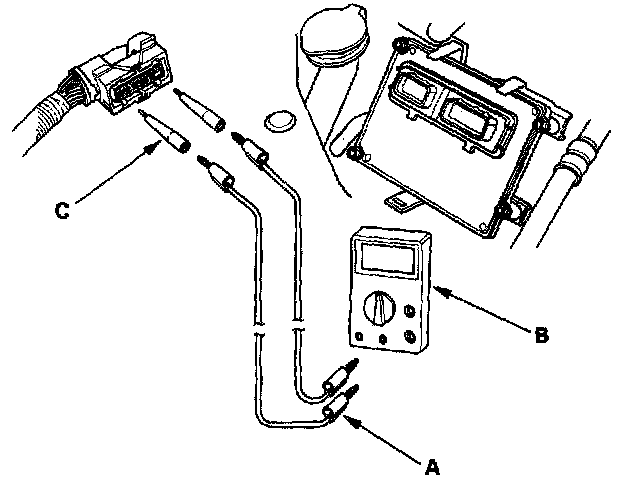 4. Disconnect the PCM connectors and probe the terminals from the terminal side of the connectors.