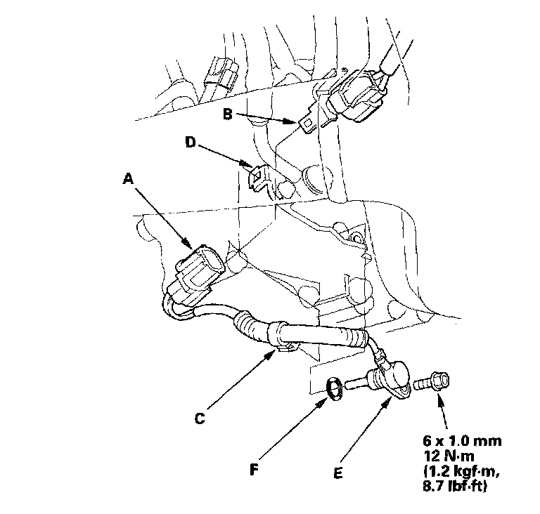 5. Install the new ATF temperature sensor (E) and a new O-ring (F).