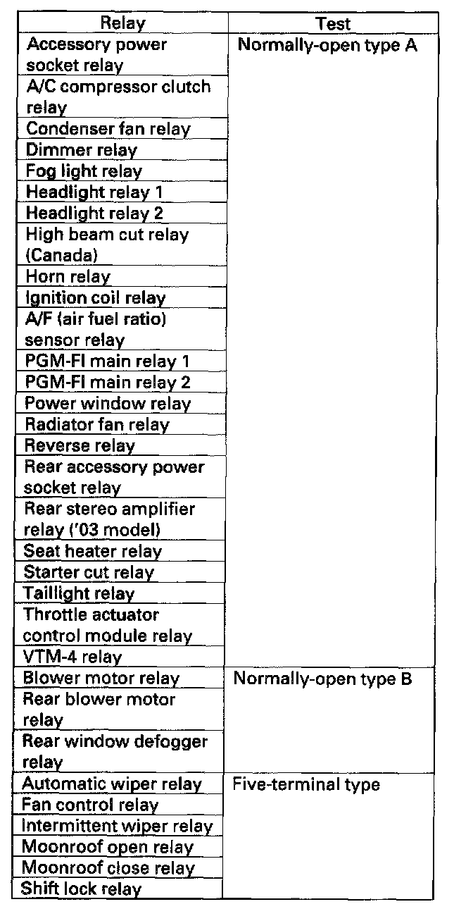 Power Relay TestUse this chart to identify the type of relay, then do the test listed for it.