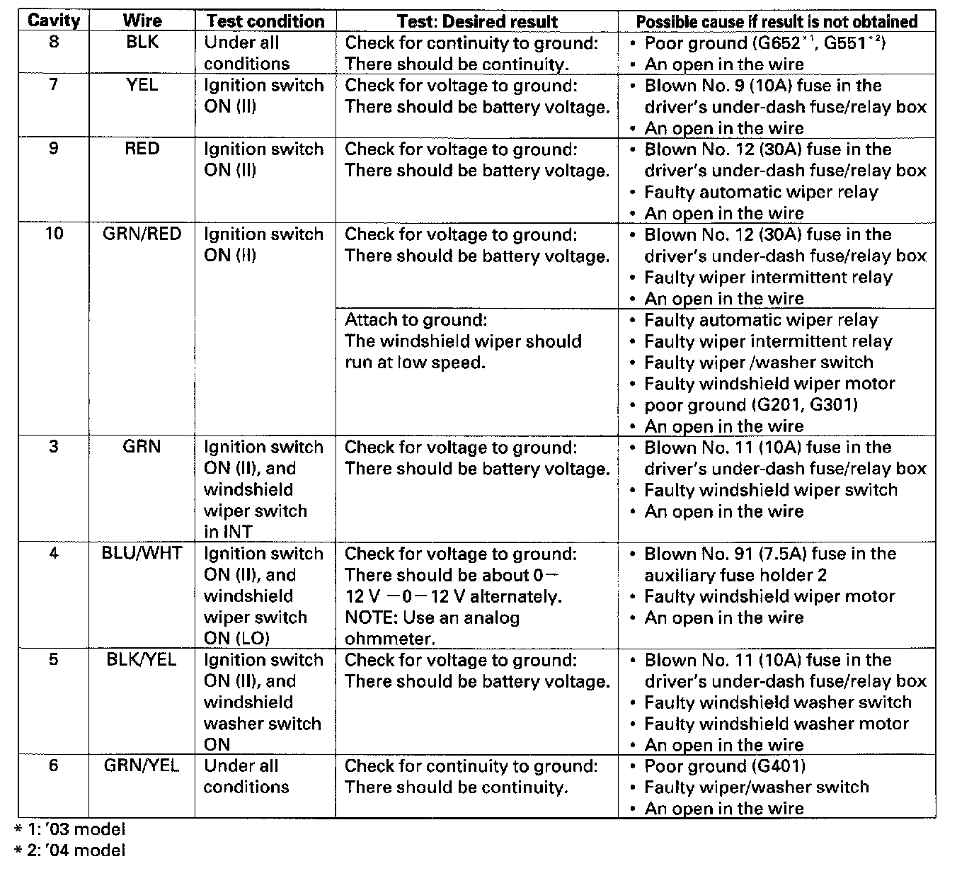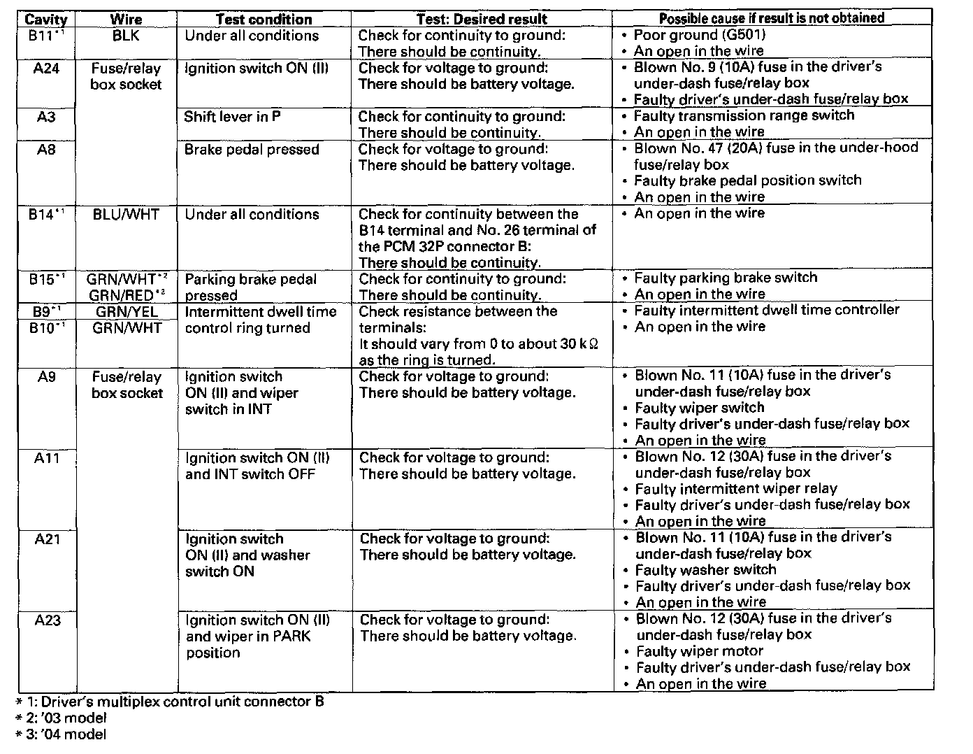 1. Before testing the wiper/washer control functions, troubleshoot the multiplex control system.